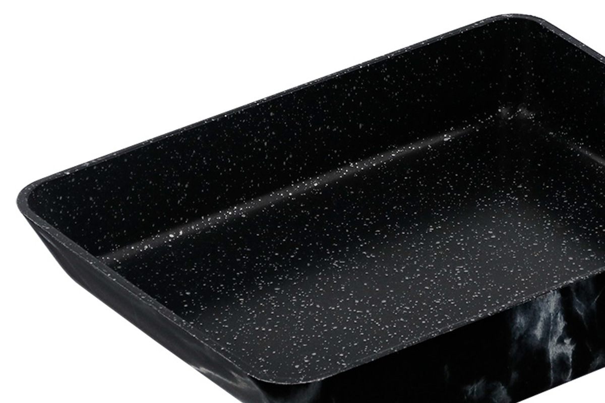 大理石模様が目を引く、オシャレな卵焼き器です。表面には高度な技術を用いた上品な大理石調デザインを施し、調理中も収納時も洗練された印象を与えます。