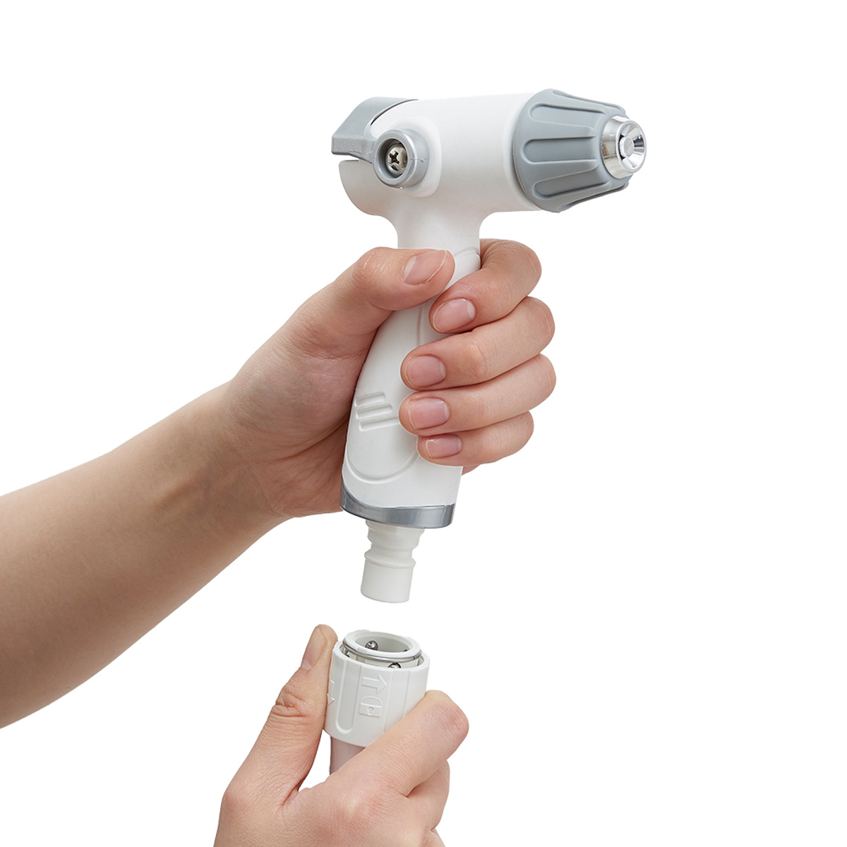 付属のワンタッチジョイントを使えば、高水圧ガンとお使いのシャワーヘッドをワンタッチで切り替えることができます。