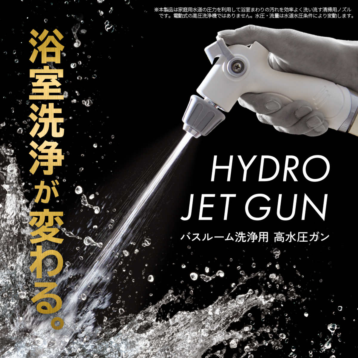 ※本商品は家庭用水道の圧力を利用して浴室まわりの汚れを効率よく洗い流す清掃用ノズルです。電動式の高圧洗浄器ではありません。水圧・水流は水道水圧条件により変動します。