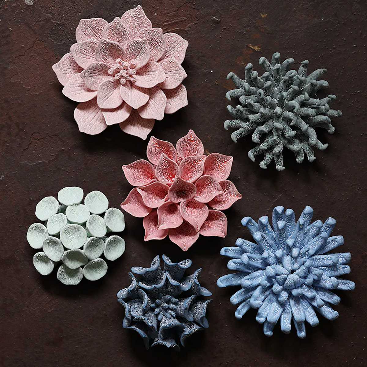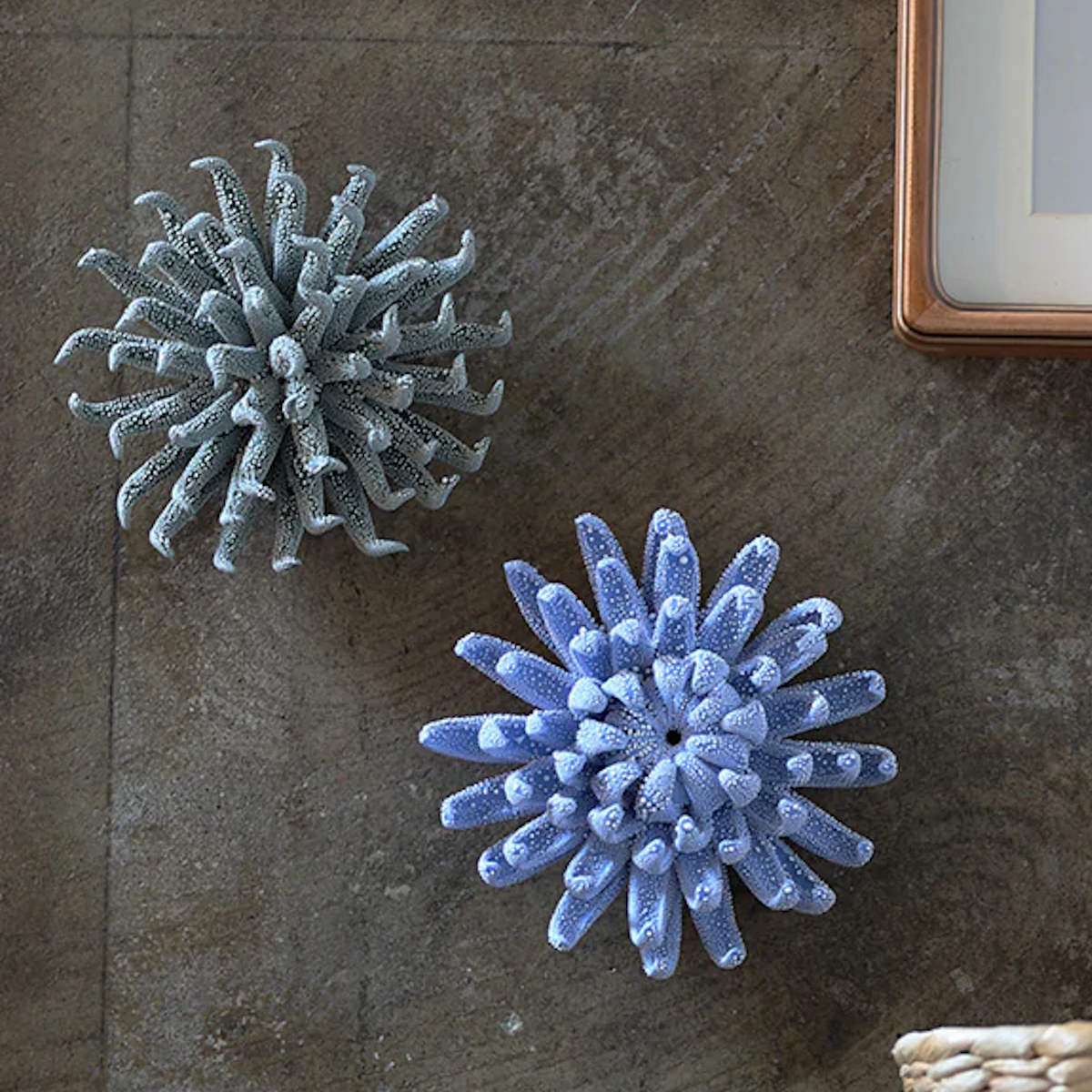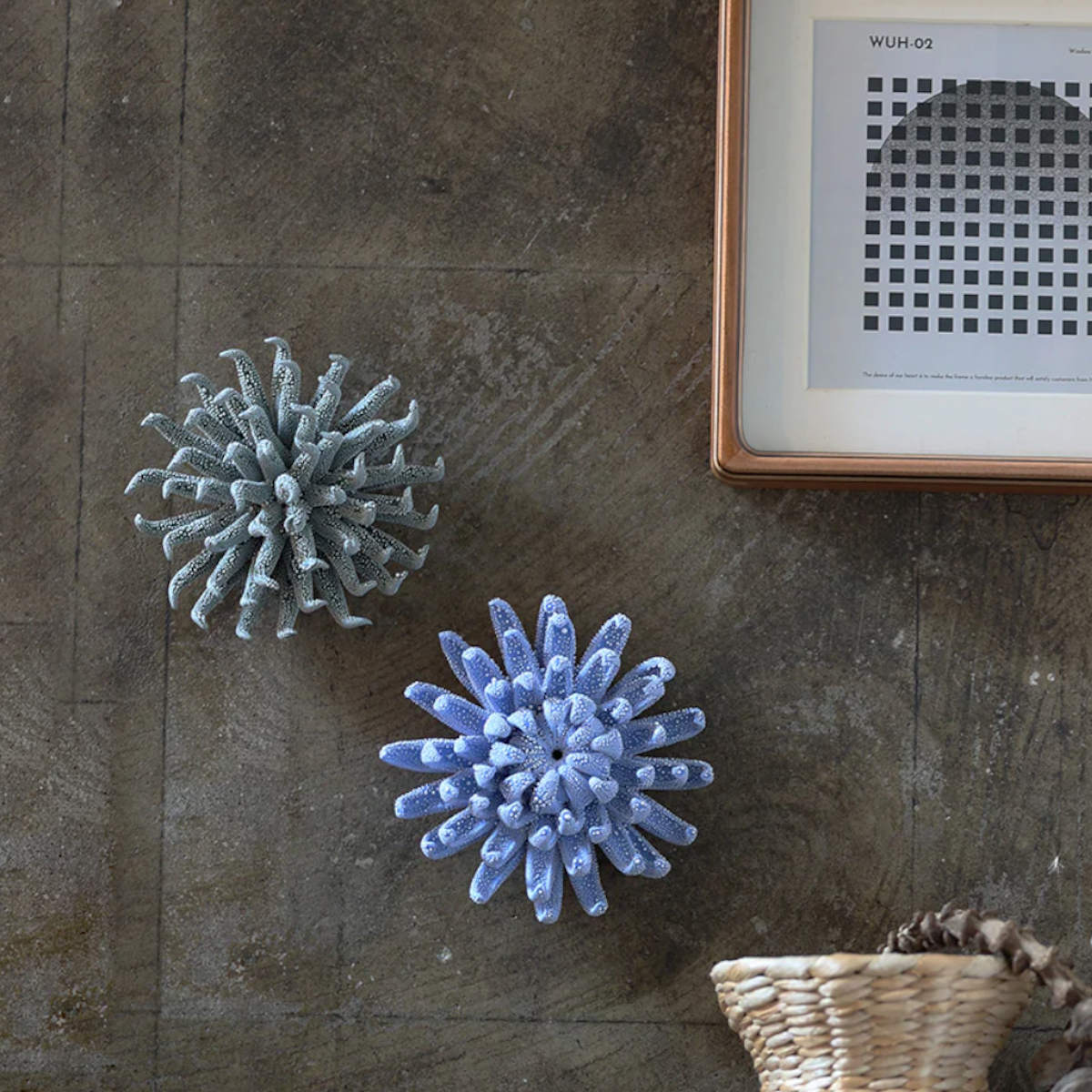 重厚な質感の中に精密な造形美が際立つ、魅惑的なお花のフォルムをしたオブジェです。一つで飾っても、複数を組み合わせても華やかな印象になります。玄関やリビングなど、壁面のシンプルな空間にアクセントを加えたい場面に最適です。