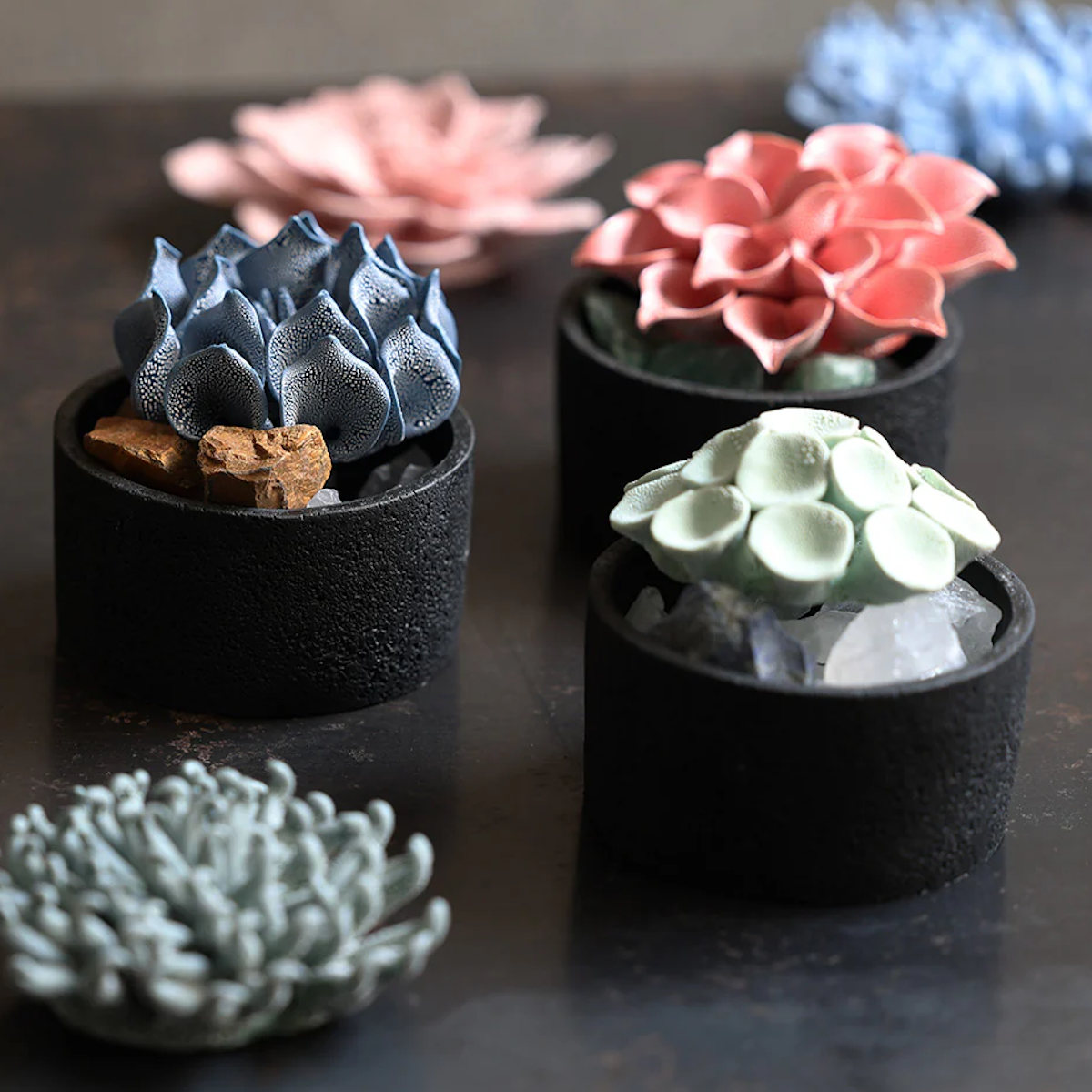 単体で飾るだけでなく、香りまとうアロマストーンや小さなプランターと組み合わせて、立体的なオブジェとして愉しむことも可能です。お好みのスタイルで飾り付けができます。コレクションやギフトにもおすすめです。
