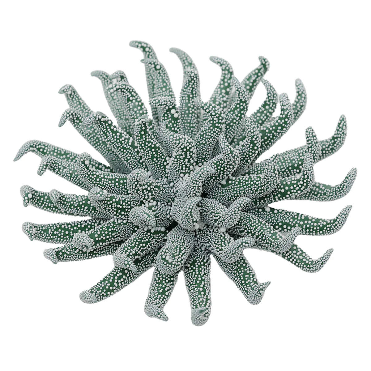 花びらの数や大きさ、粒のバランスは一つ一つ手作りのため、同じものは存在しません。まるで未知の植物を思わせるフォルムに、白く粒立つテクスチャーを施し、光を受ける度に繊細な陰影を生み出します。本物のような各々の個性的な魅力を愉しめます。