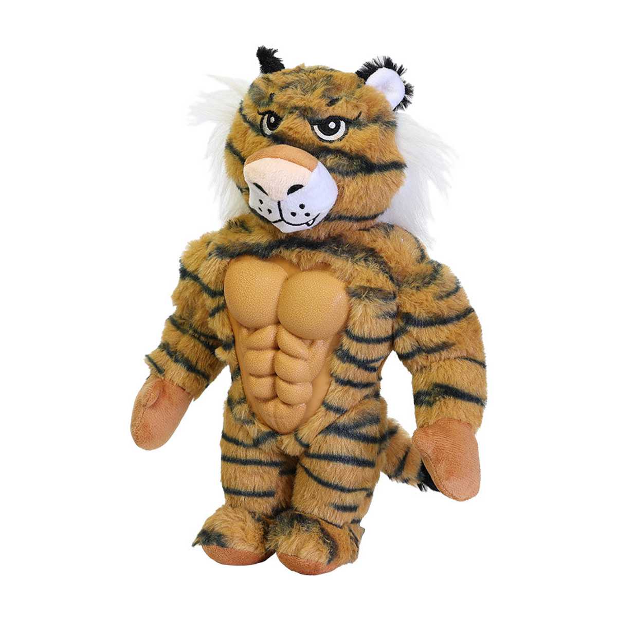 どんなに噛まれても振り回されてもへこたれない、屈強なボディを持つペット用おもちゃです。愛犬が退屈するとムキムキボディで立ち上がり、全力で遊びに応えます。お腹を押すと、見た目からは想像できない「プッ、プッ」という可愛い音が鳴り、好奇心を刺激。噛む・押す・振るなどの動きで、遊びがもっと楽しくなります。