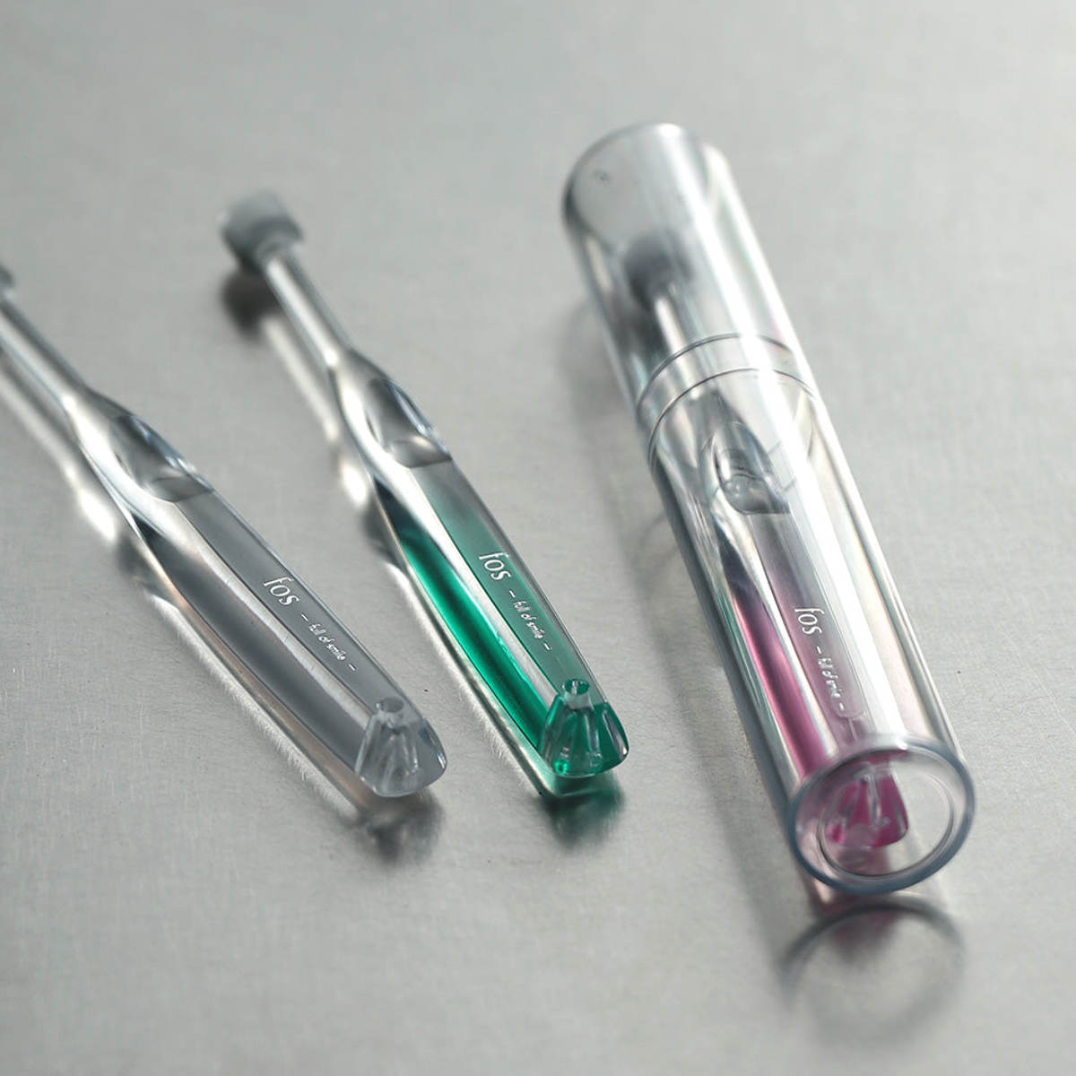 持ち手にはBPAフリーのトライタン樹脂を使用し、耐熱100度で煮沸消毒も可能。ガラスのような透明感があり、清潔感のある美しいデザインです。光触媒加工を施した専用ケース付きで、保管や持ち運びも衛生的に行えます。