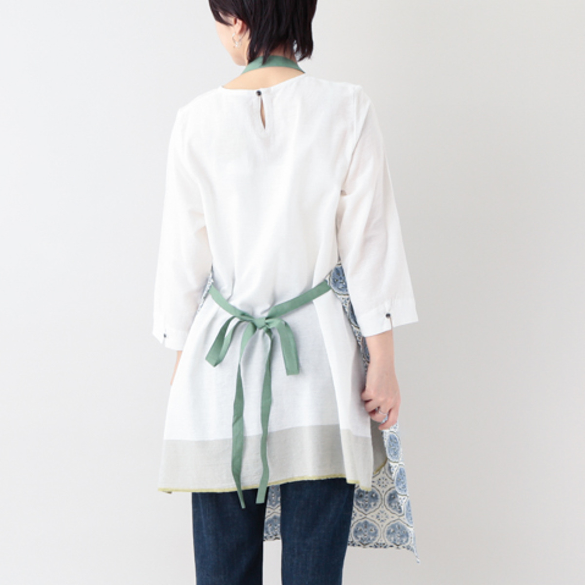 インドの染色技法で仕立てたエプロン