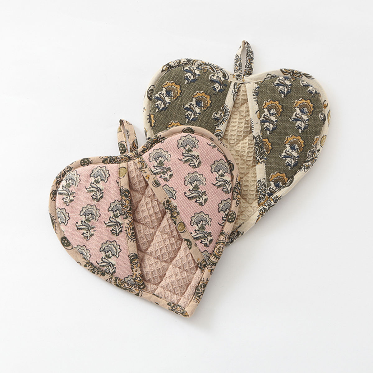 素朴な風合いが魅力のブロックプリント調鍋掴み