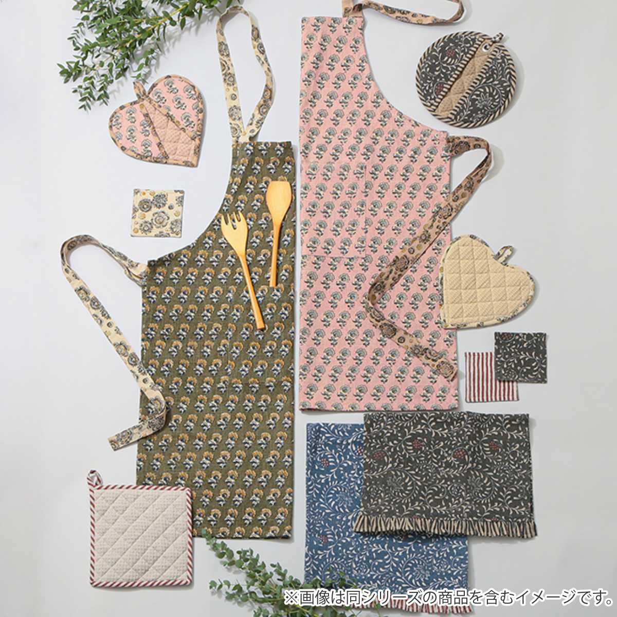 同シリーズには鍋掴みのほか、鍋敷きやエプロンも揃っており、組み合わせて使うことでキッチンにまとまりのあるコーディネートが楽しめます。