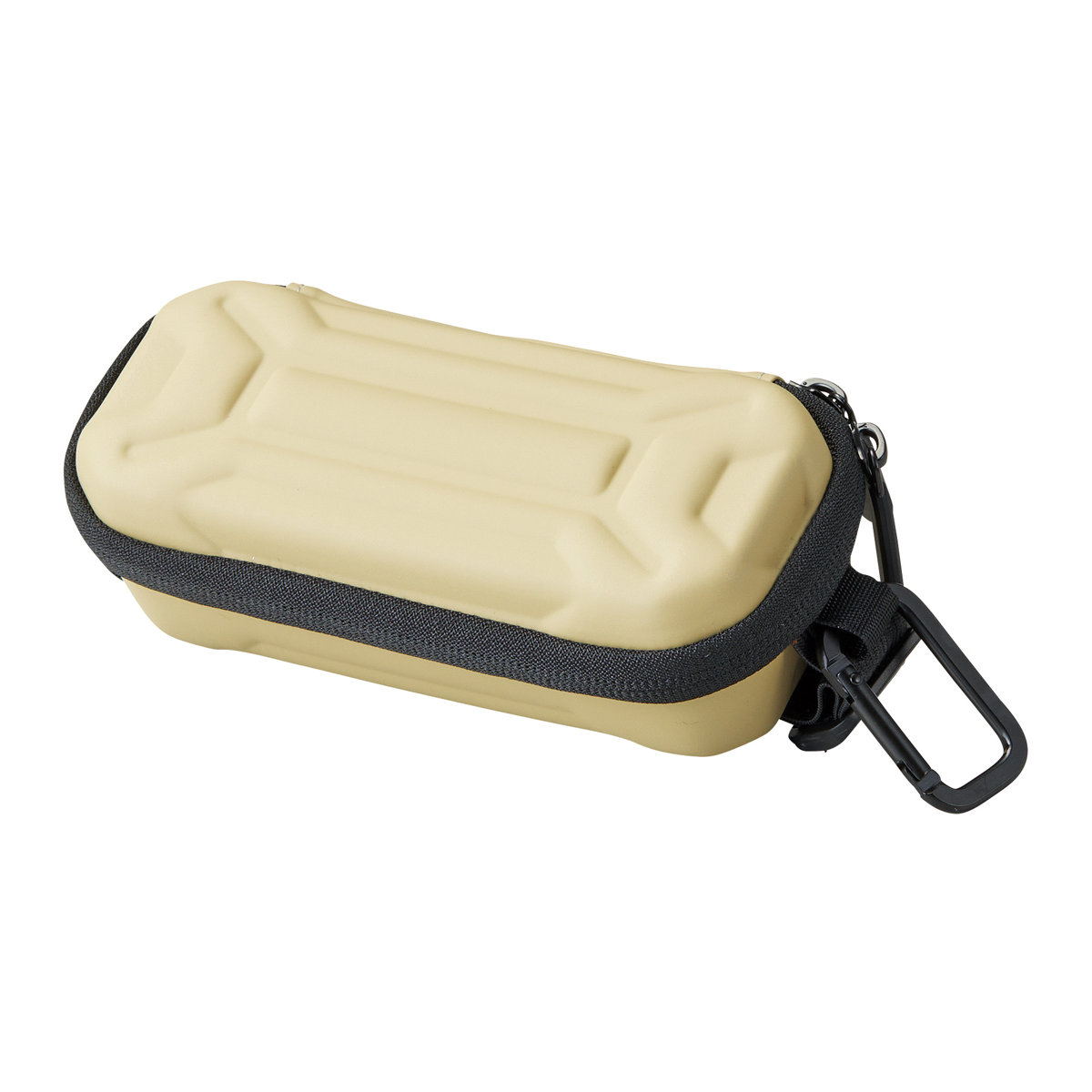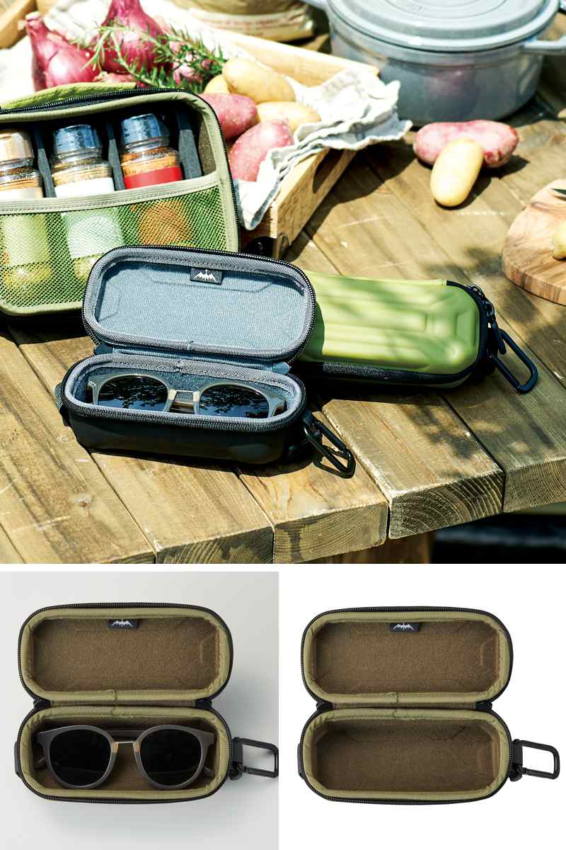 オイルタンクを思わせる立体的な凹凸を施した、タフな表情のメガネケース。アウトドアテイストを取り入れたデザインで、バッグの中でも存在感を放ちます。