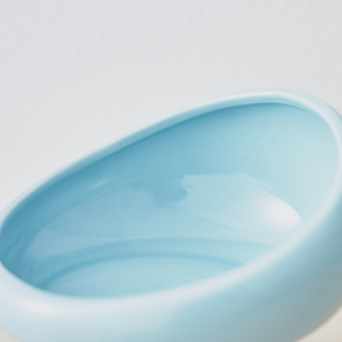 器の内側は浅めで、口元をしっかり差し込めます。なめらかなカーブ形状で、ドライフードも集まりやすく、最後まで食べやすいデザインです。