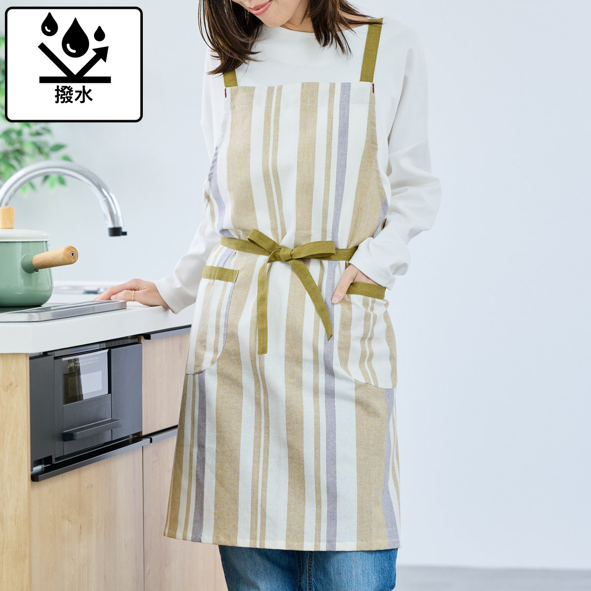 撥水機能を備えた、毎日の家事に使いやすいエプロン