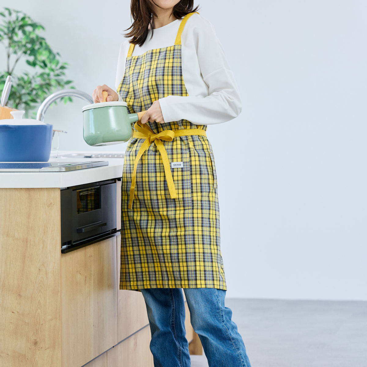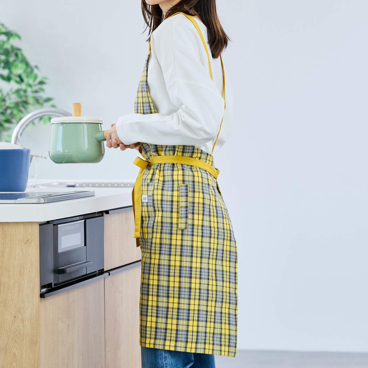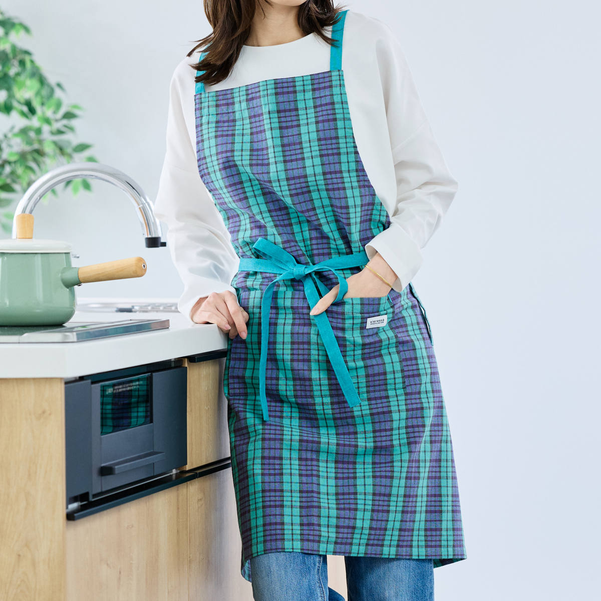 毎日使いたくなるチェック柄のエプロン