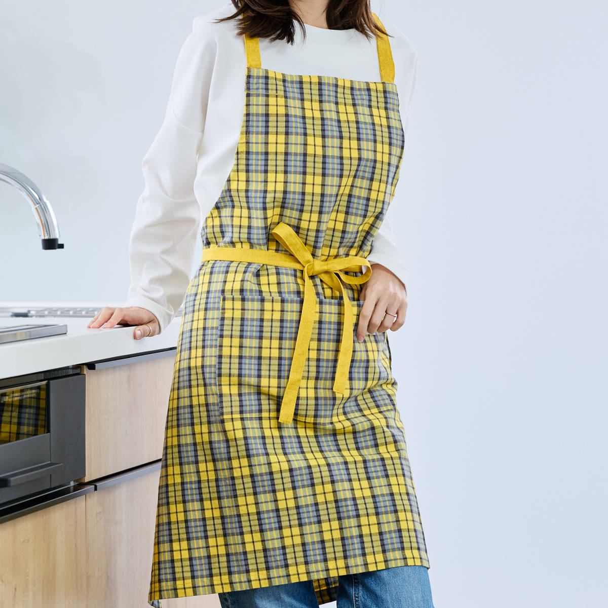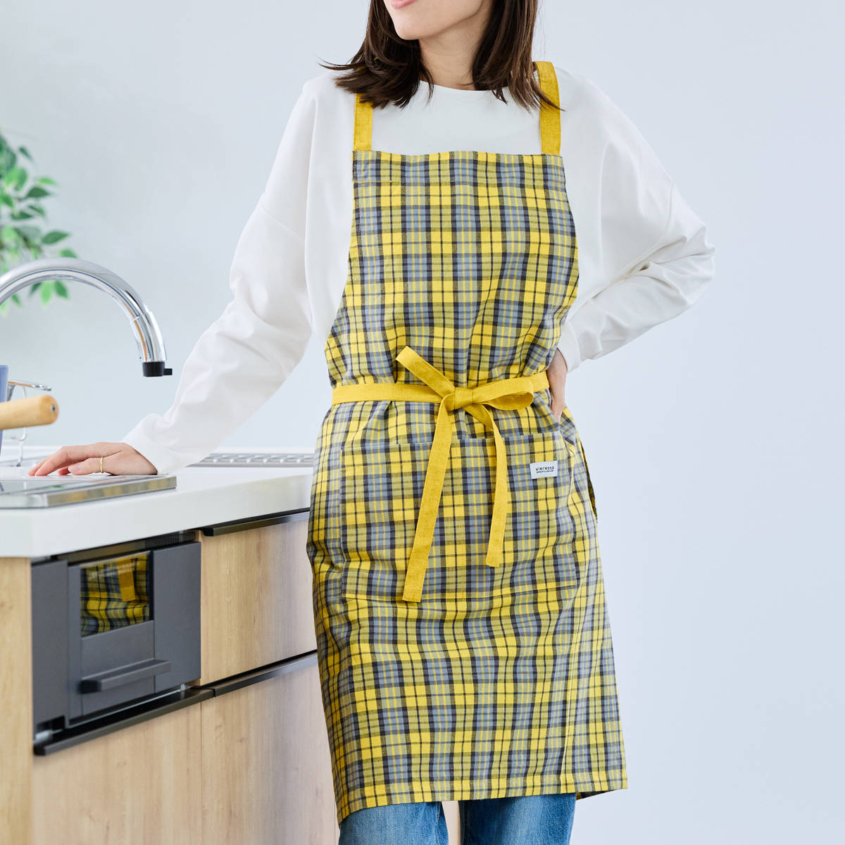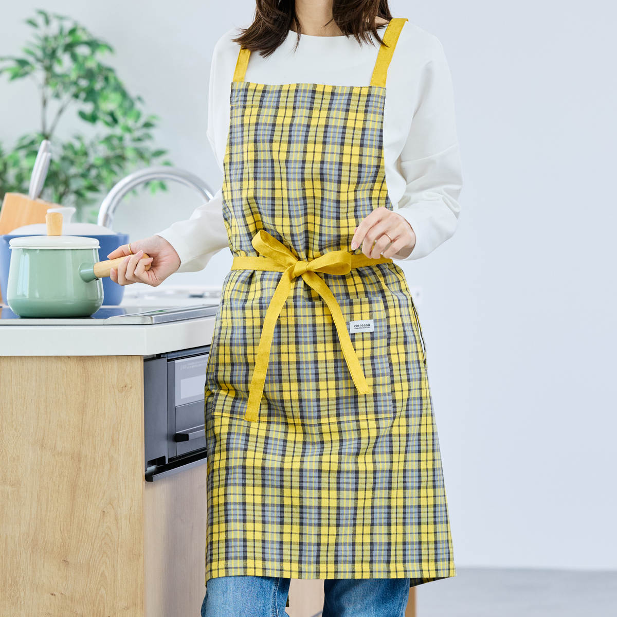 毎日使いたくなるチェック柄のエプロン