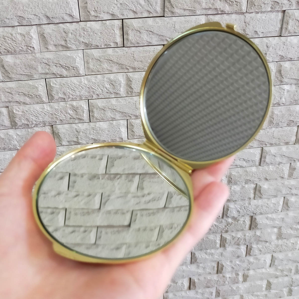 こんもりした透明樹脂盛りが可愛らしいコンパクトミラーです。かさばりがちなメイクポーチにスッキリ収まり、お出かけや旅行の際に活躍します。