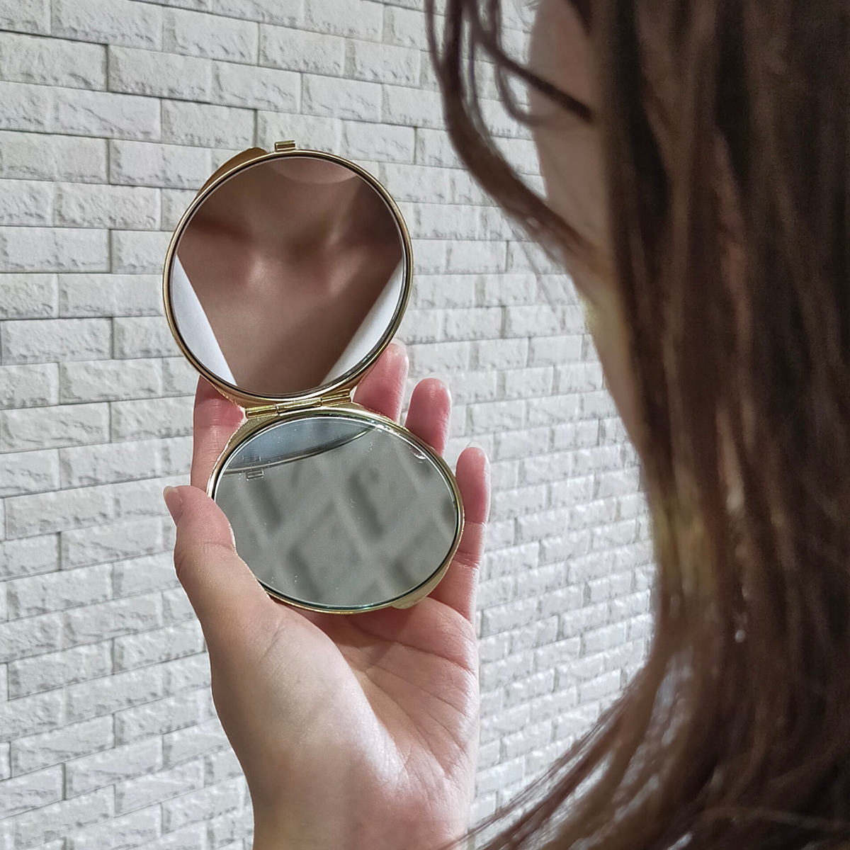 片面が2倍の拡大鏡になっているので細かい部分をチェックしやすく、メイク直しに便利です。