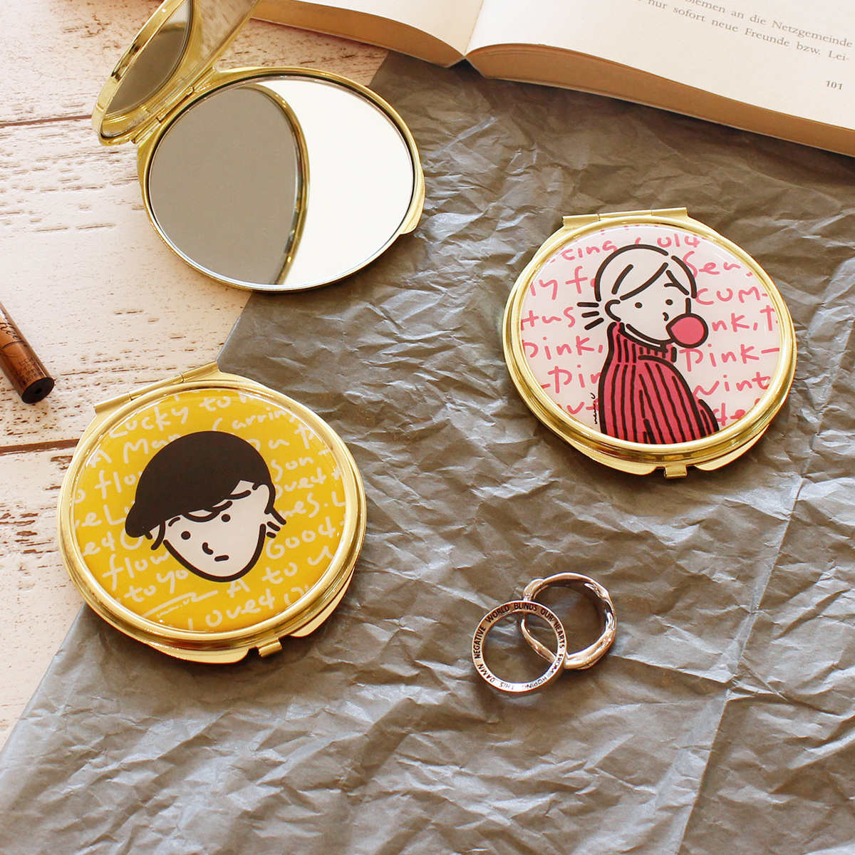 ●イラストレーター「uca U」とコラボした両面コンパクトミラーです。
