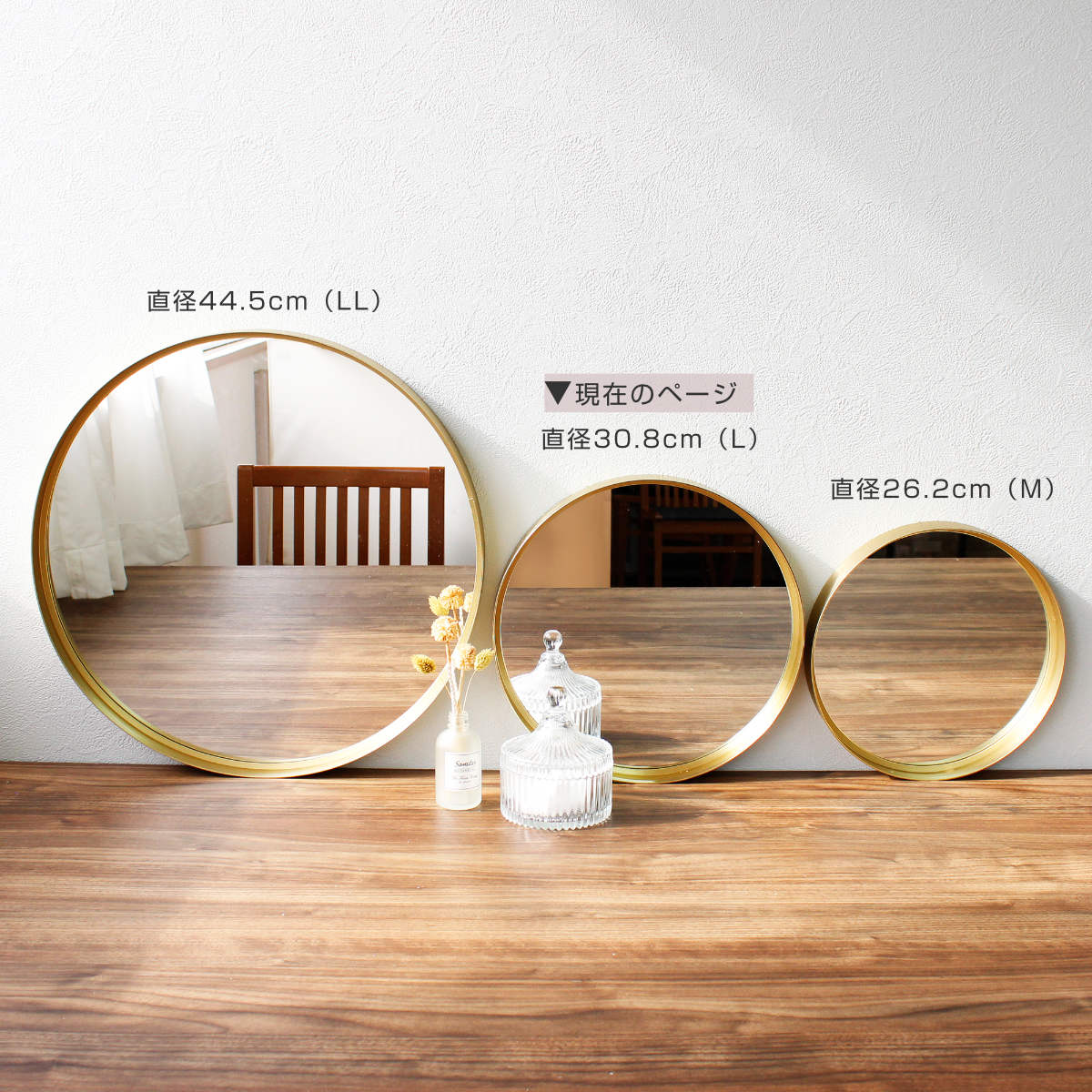 | サイズ | 直径:約 30.8(cm) 厚み:約3.8(cm) ミラー部分:直径約29.2(cm) |