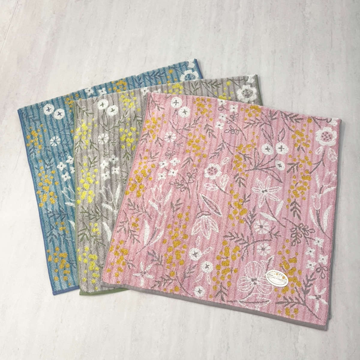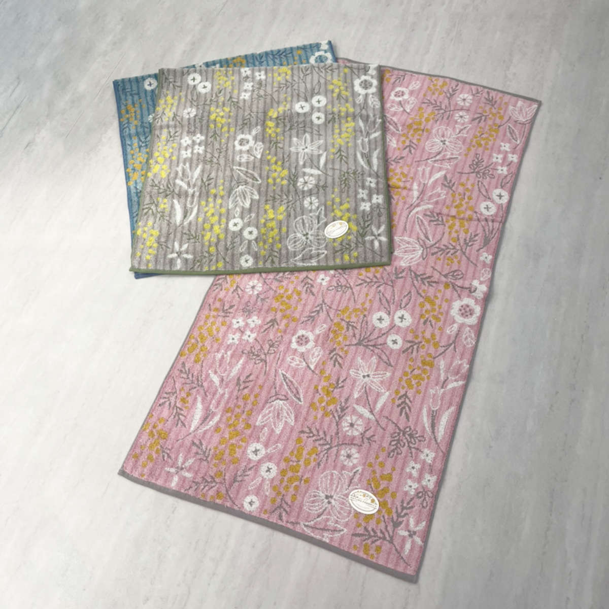 ふわりとやさしい風合いとナチュラルカラーで毎日の生活に彩りを与える「ナチューラファブリカ」シリーズです。ミニタオル、ハンドタオル、フェイスタオル、バスタオルの4サイズ展開で、お花や動物のデザインがあります。用途に合わせてお好みでお選びいただけます。
