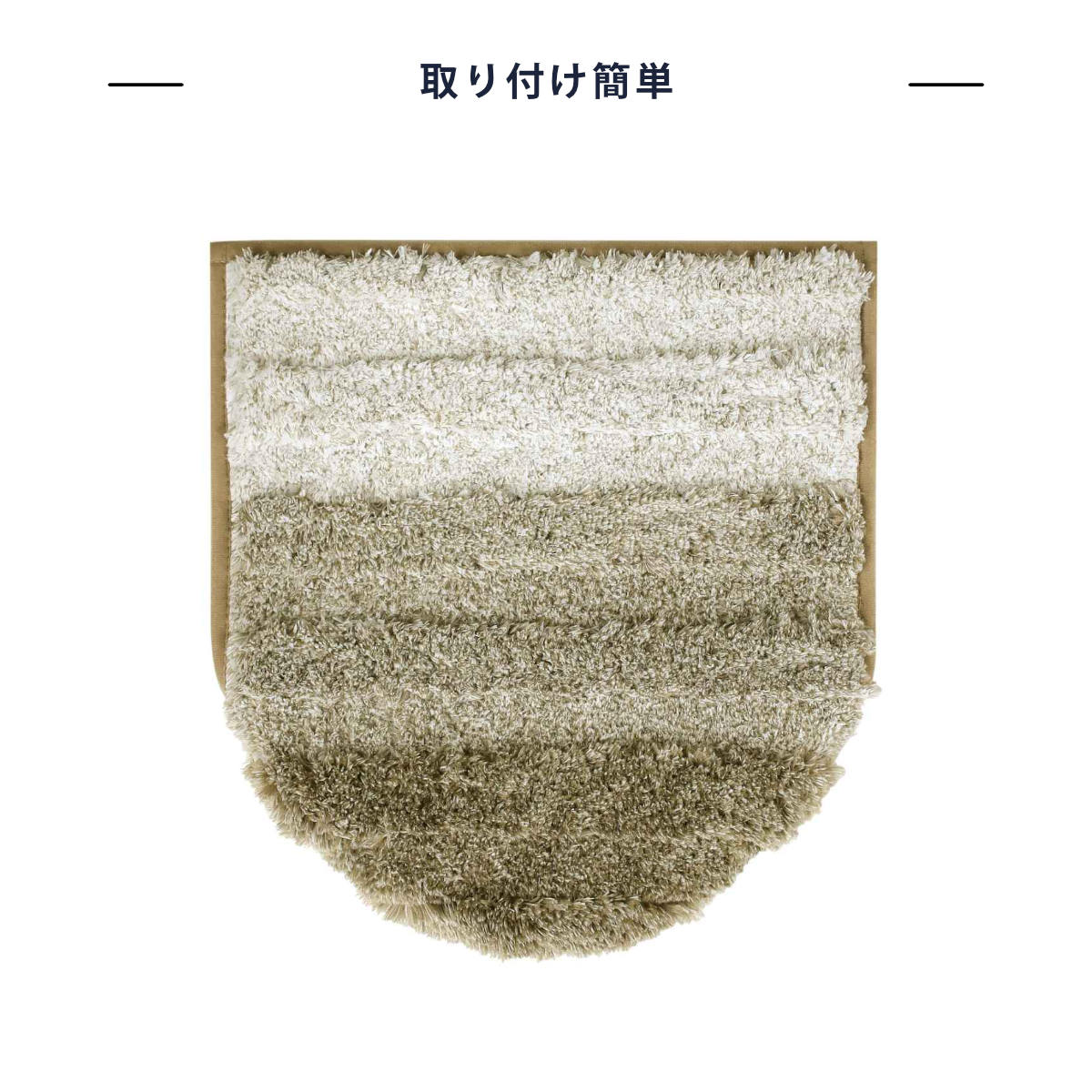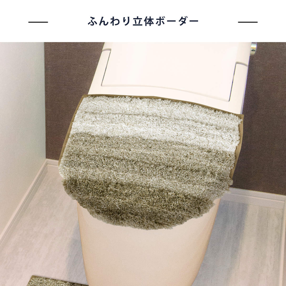 ふんわりやわらかな糸と立体的な凹凸ボーダーで仕上げた蓋カバーです。やさしい肌ざわりとほどよい立体感で、トイレ空間にあたたかみをプラスします。裏面には縫製された粘着シートを採用しており、普通型(U・O型)・洗浄暖房型に対応する兼用タイプです。