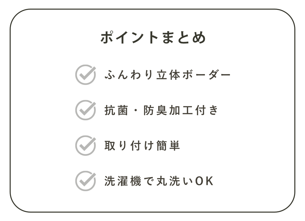 毎日使う場所だからこそ、うれしい抗菌・防臭加工付きです。気になるニオイの発生を抑え、清潔感を保ちます。