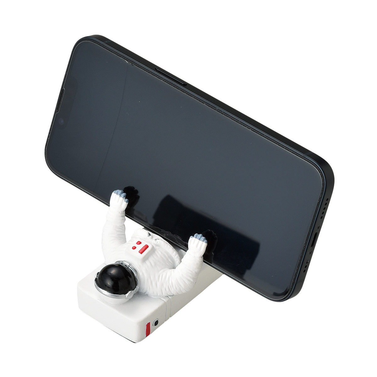 無重力の中をふわっと漂うようなポーズが愛らしい、宇宙飛行士のスマホスタンドです。置くだけで、デスクに遊び心と癒しをプラスします。