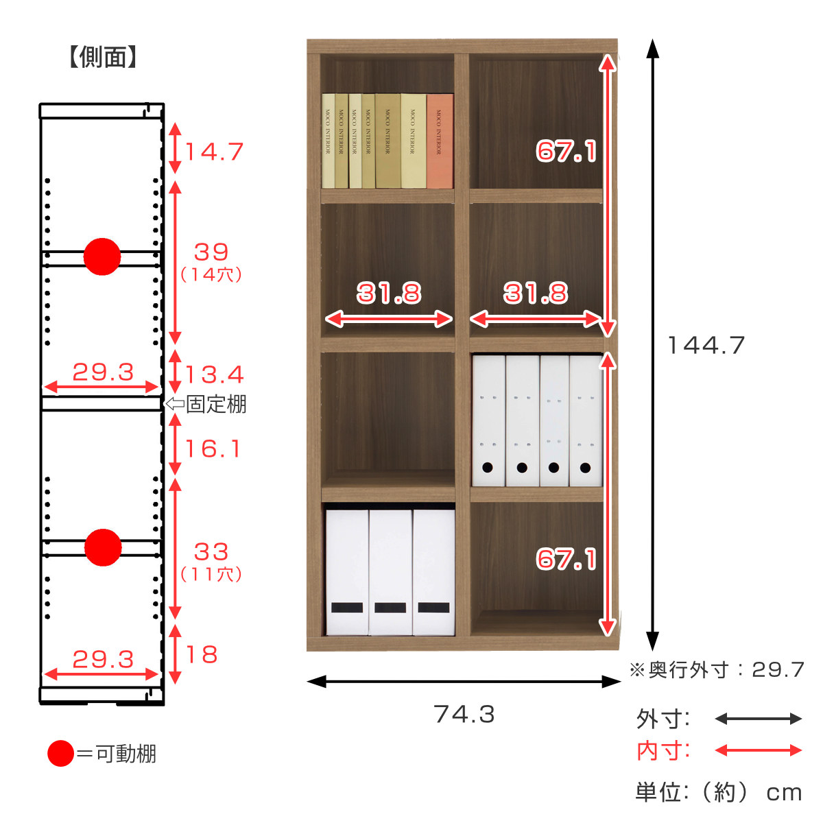 - 約幅74.3×奥行29.7×高さ144.7cm