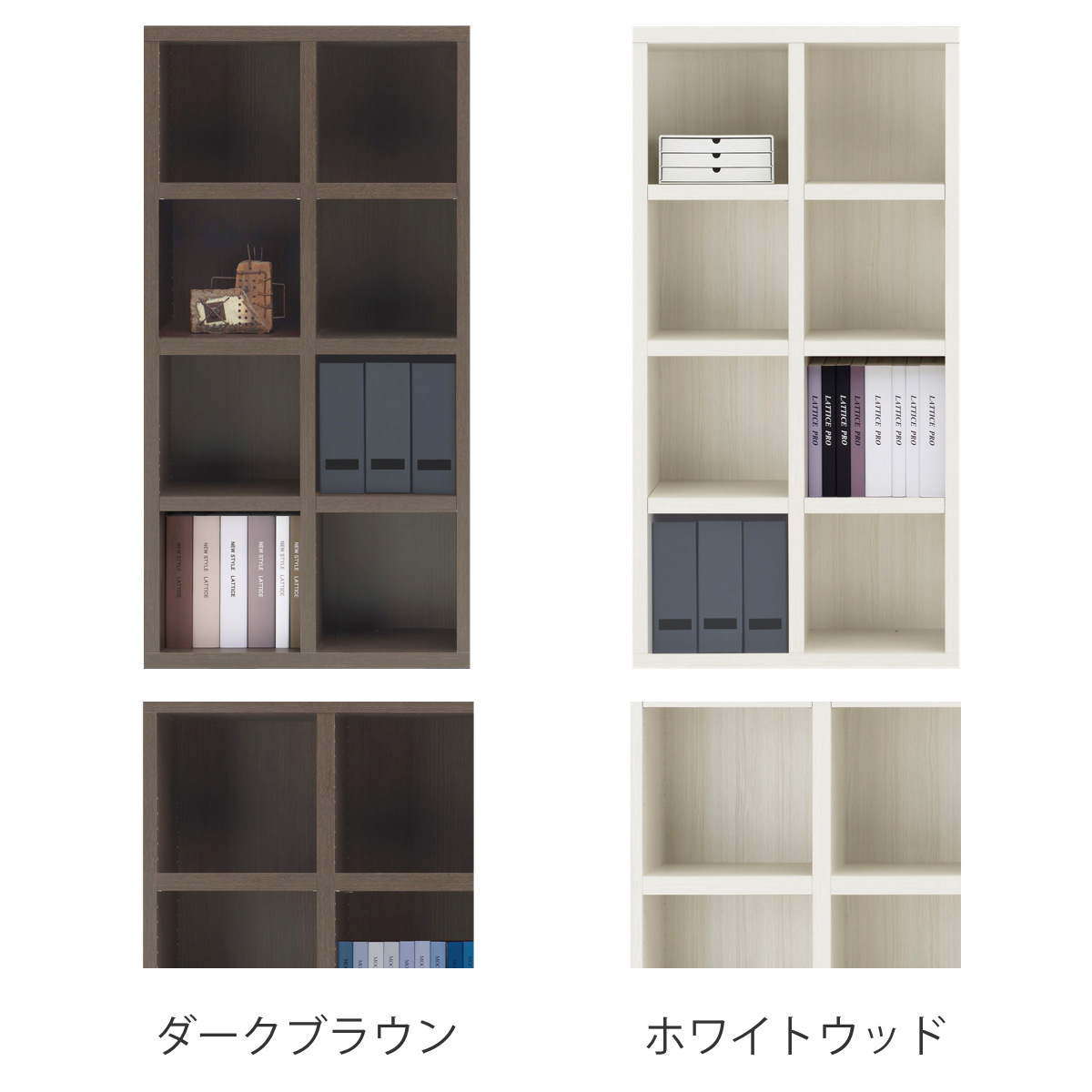 ●無駄を省いたシンプルなブックシェルフ 4段2列タイプです。