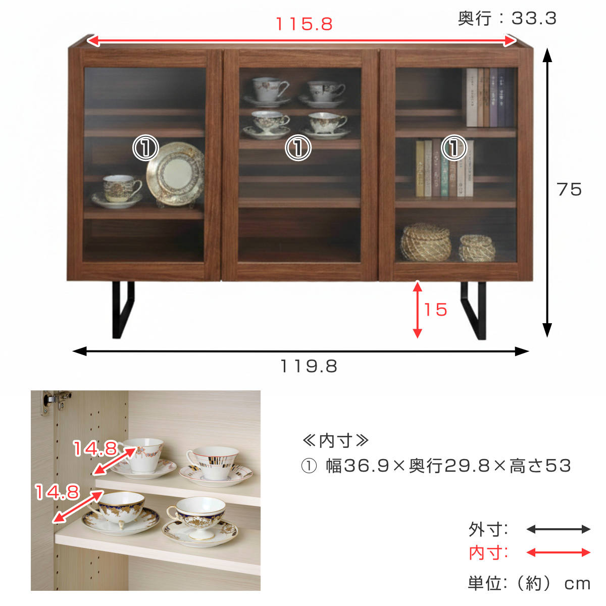 - 約幅119.8×奥行33.3×高さ75cm