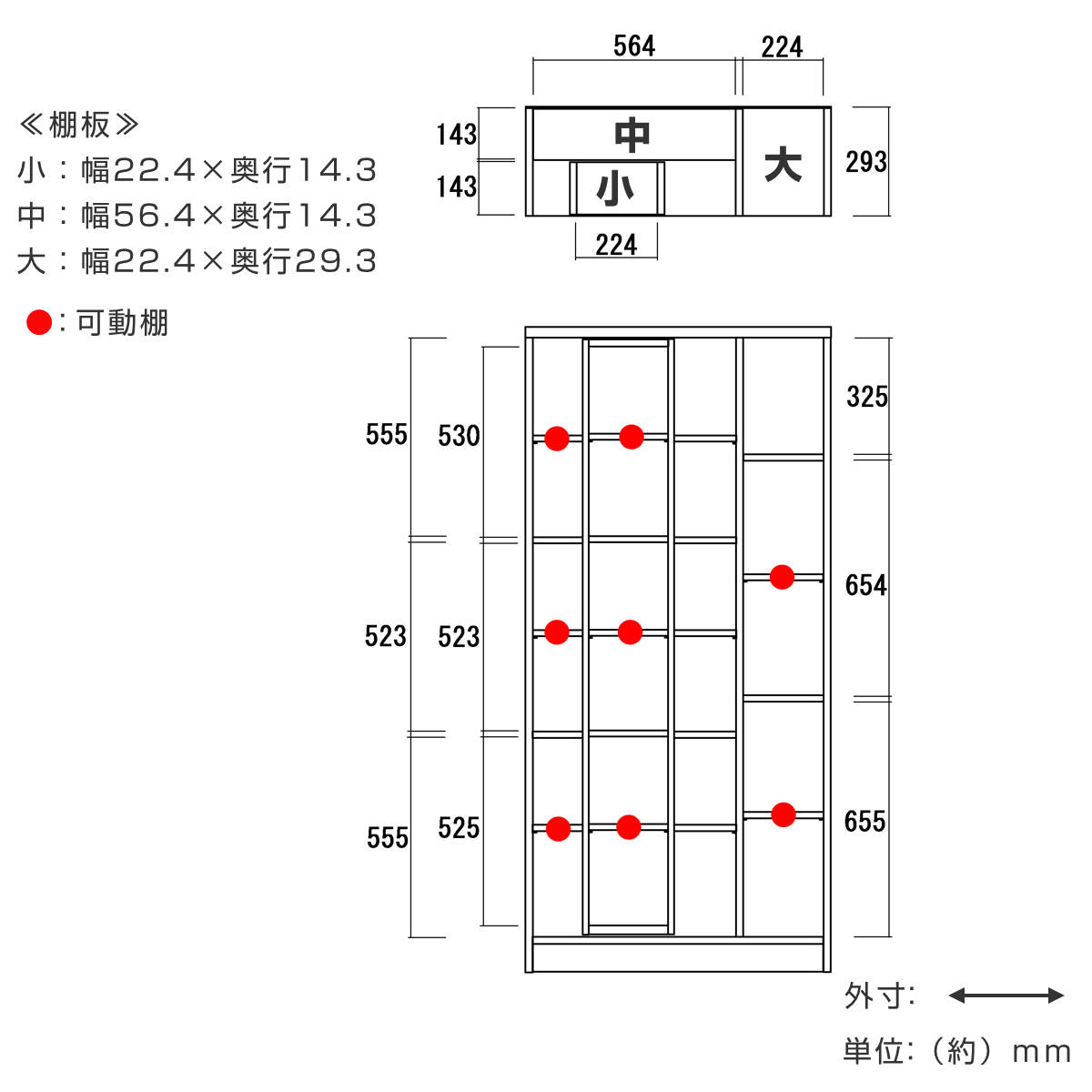 | 内容量 | 1台 付属品:可動棚8枚(大2枚、中3枚、小3枚)、固定金具 |