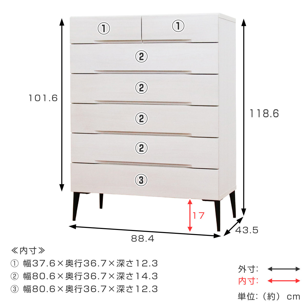 | 引き出し段数 | 6段 |