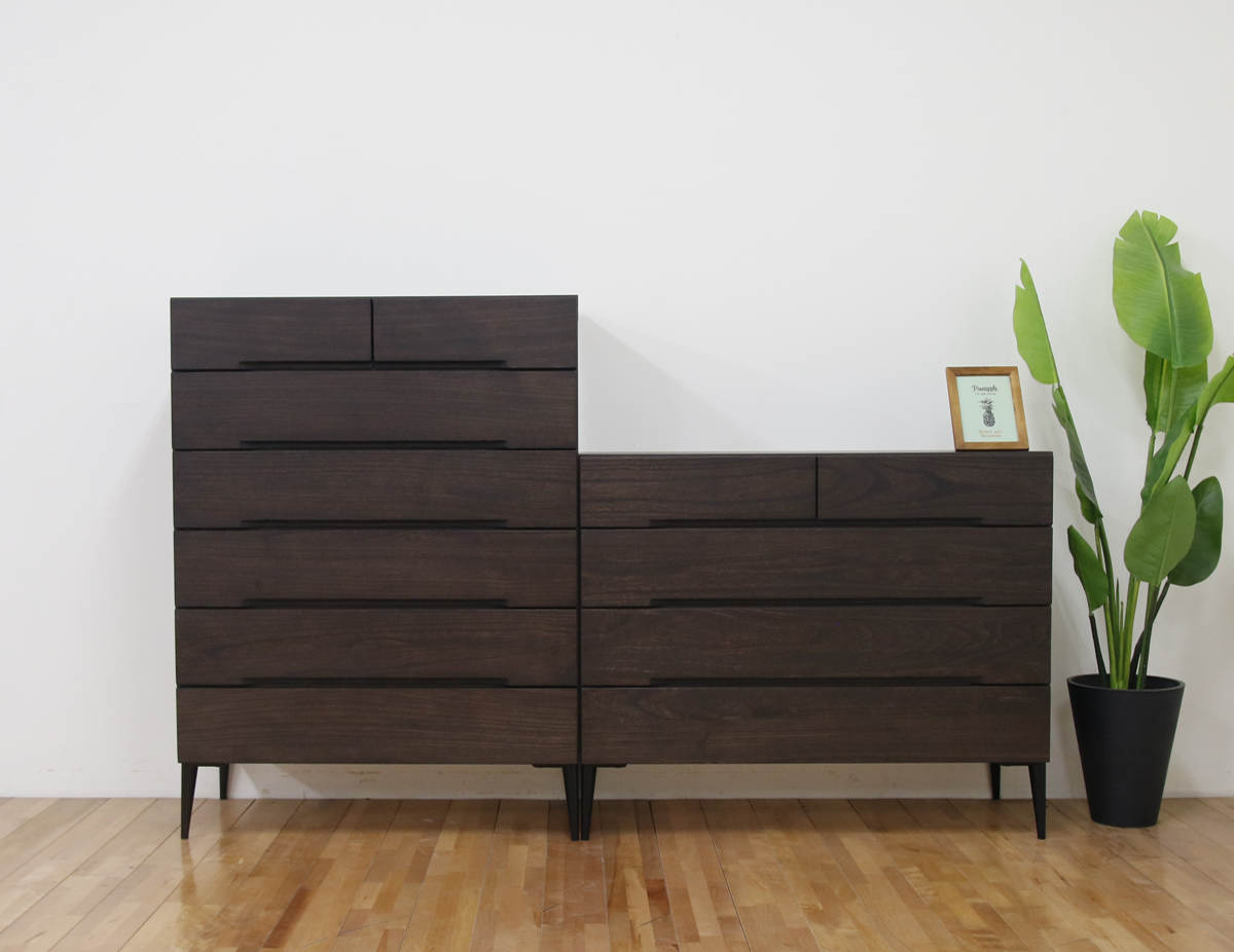 桐×伝統技法×モダン、古き良き日本の伝統文化を融合した桐製チェストです。シックなカラーリングに、ブラックアイアンの脚がアクセントです。調湿機能を持った桐材は、日本の四季に最も合った材質と言われ、環境にもやさしい素材です。