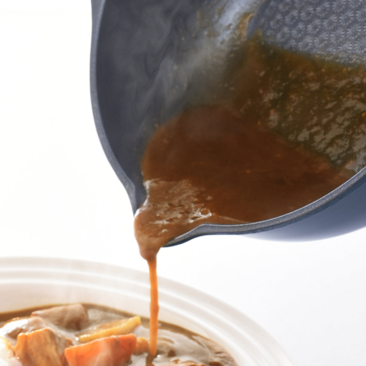 ベルフィーナ独自の特殊コーティングにより、焦げつきやすいソースも、スルッと弾いて調理でき、こびりつきにくいためお手入れも簡単です。