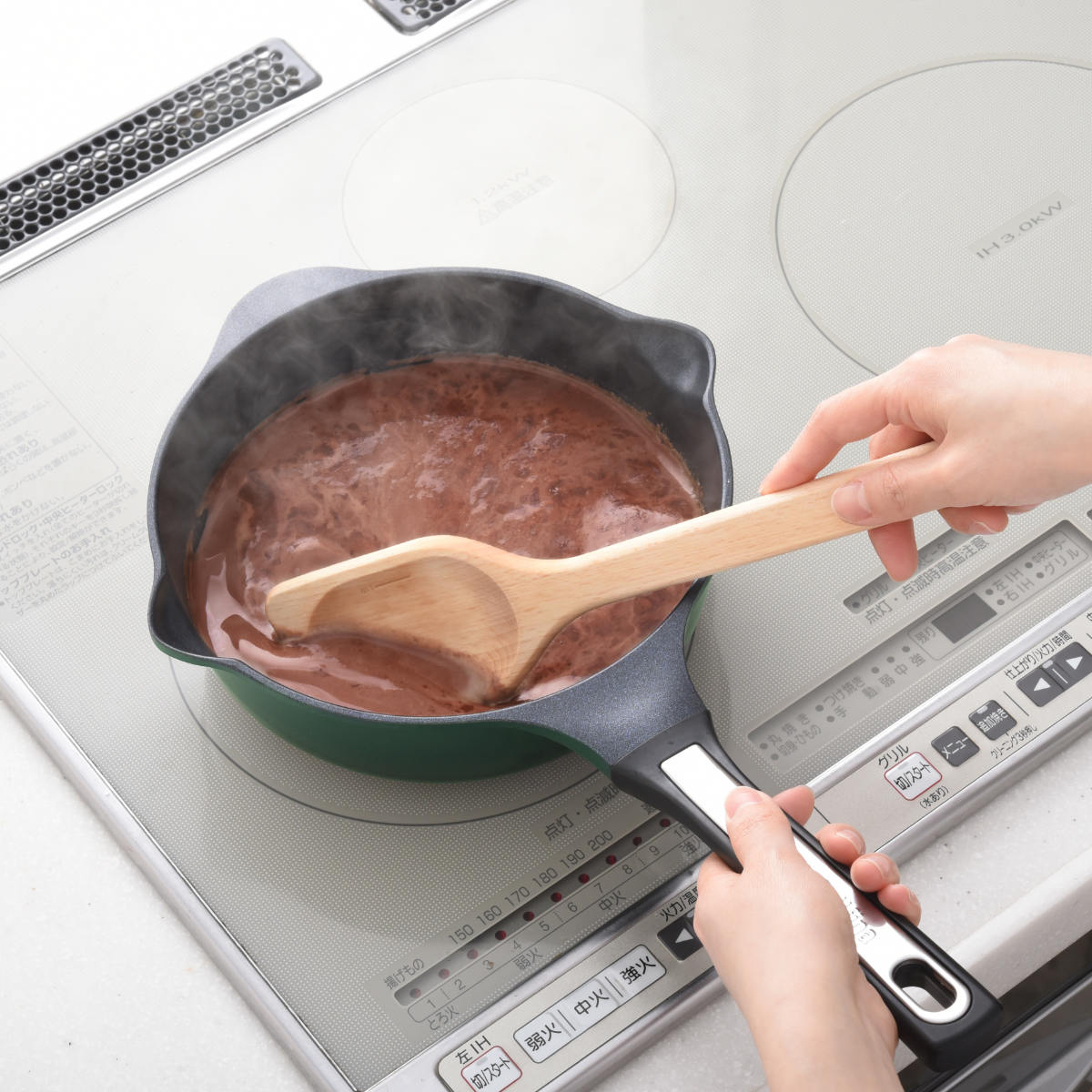 ベルフィーナ独自の特殊コーティングにより、焦げつきやすいソースも、スルッと弾いて調理でき、こびりつきにくいためお手入れも簡単です。