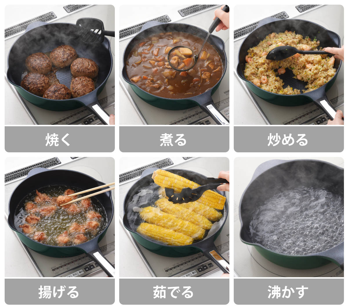 ひとつで6役をこなすフライパン