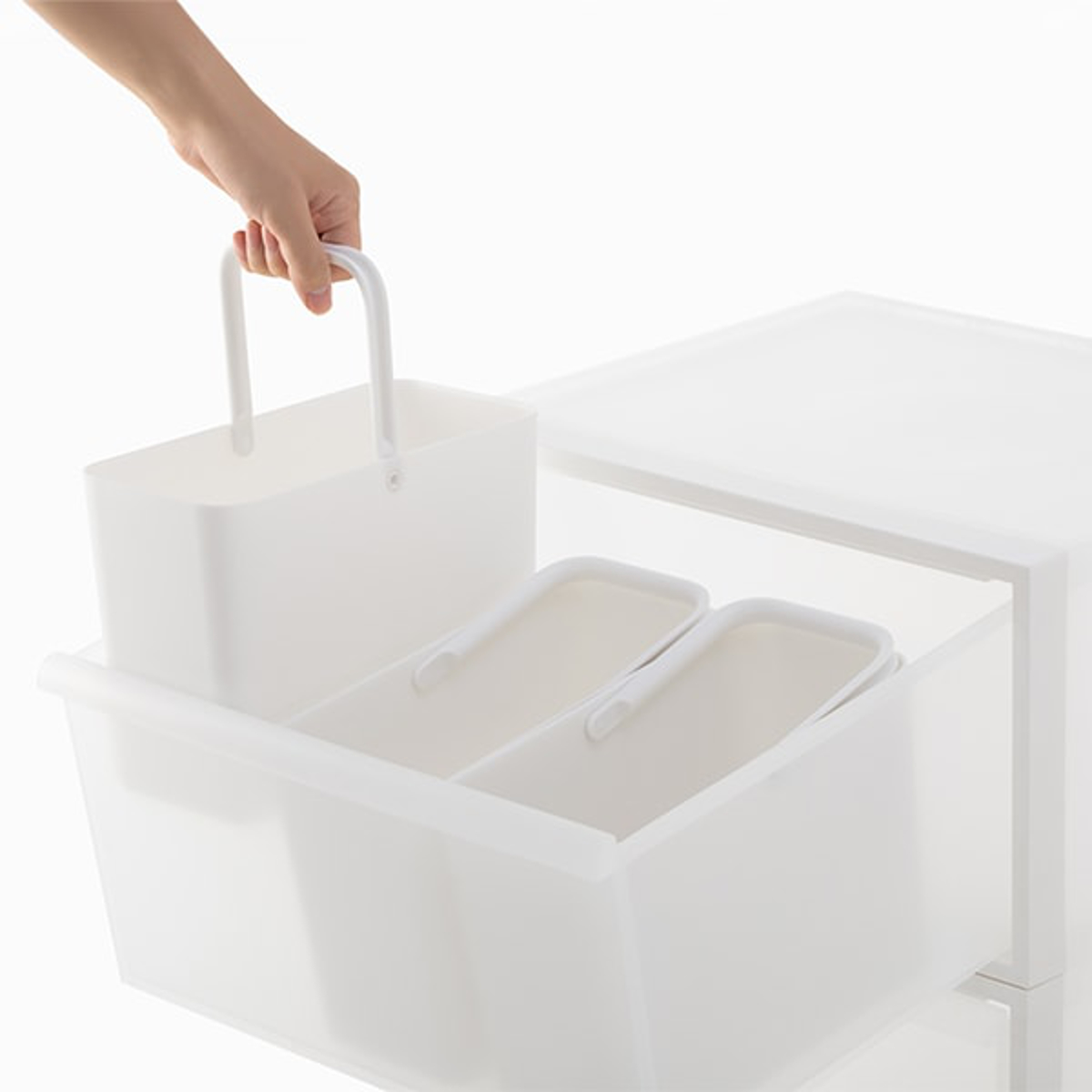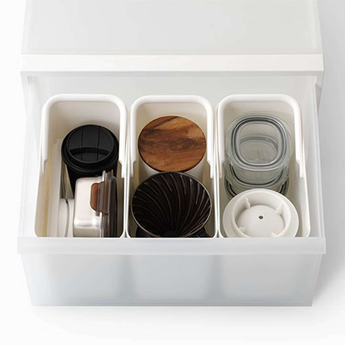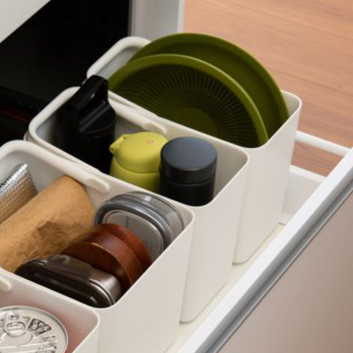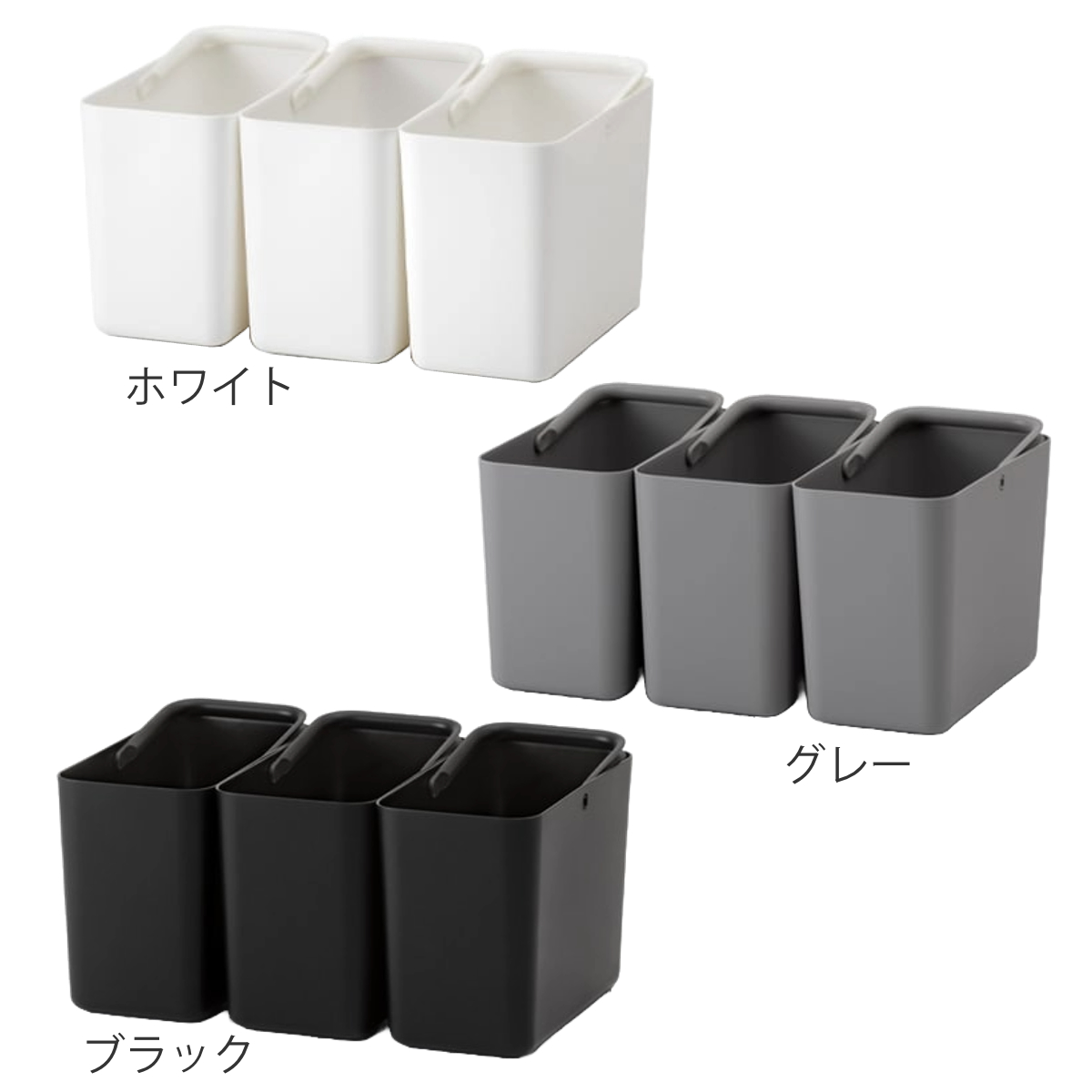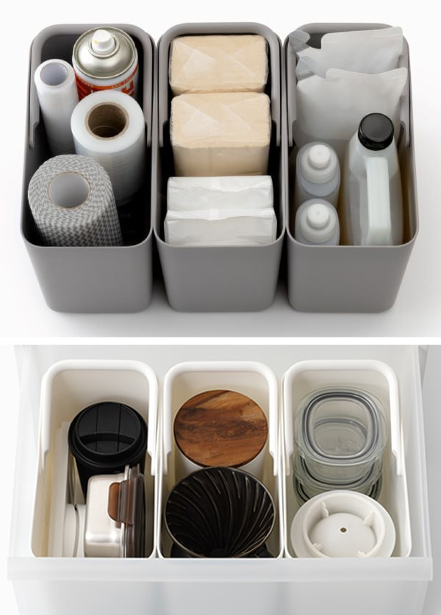 スリム設計で場所を取らず、奥行の浅い棚やちょっとしたすき間にも無理なく収まります。3個セットだから小分け収納にも使いやすく、リビングの小物整理はもちろん、キッチンの食品ストック、掃除用品、洗面まわりの備品収納など、幅広いシーンで気軽に活躍します。