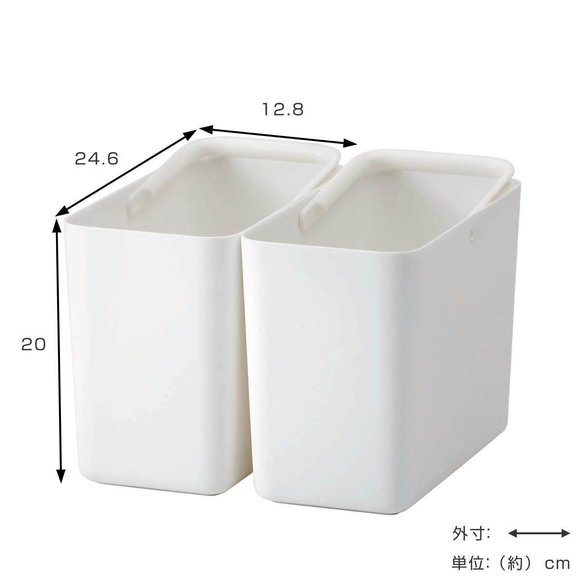 | サイズ | 外寸:約 幅12.8×奥行24.6×高さ20(cm) 内寸:約 幅9.1×奥行20.8×高さ18(cm) ※1個あたり |