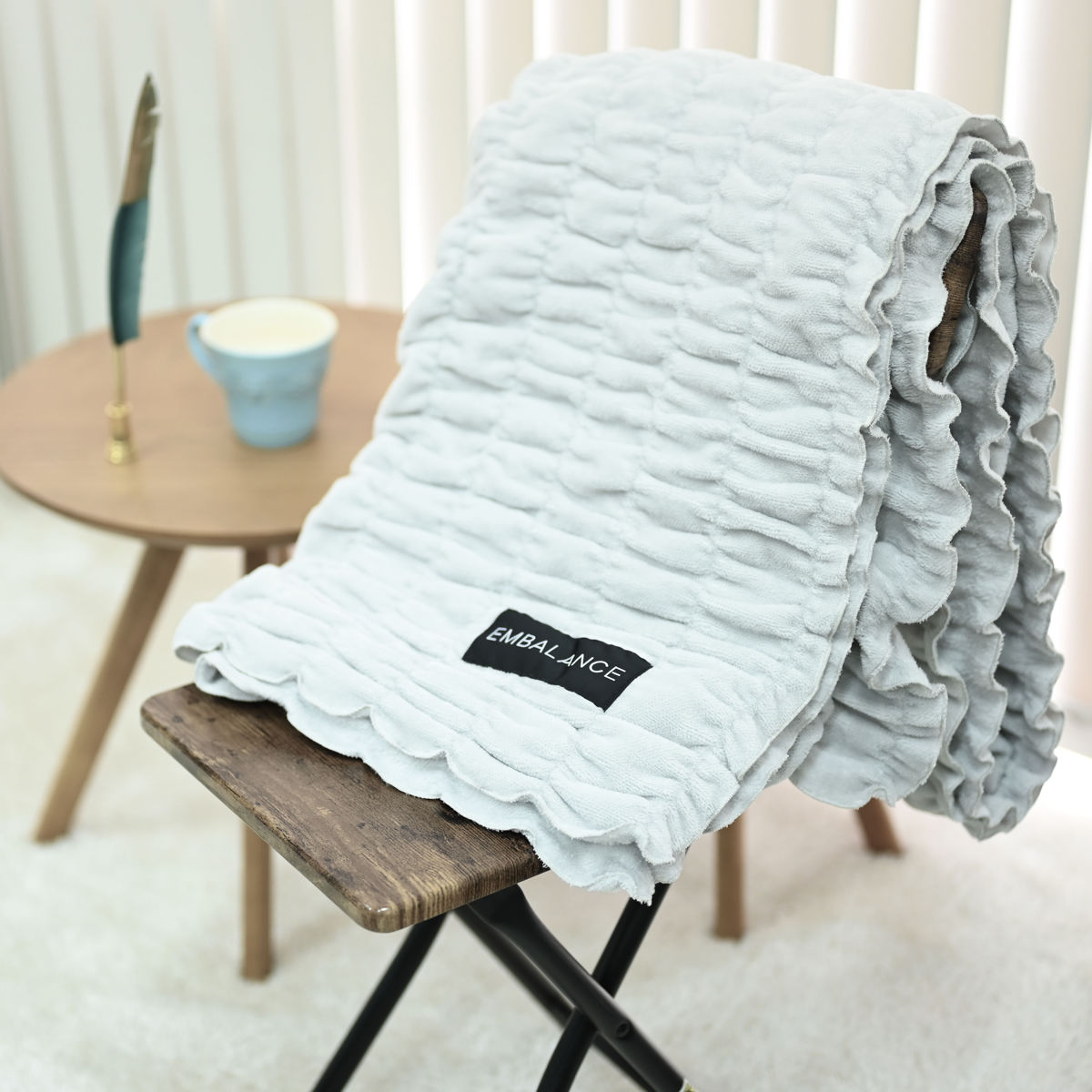 エンバランス加工を施した繊維を使用しています。細めの糸を丁寧にきめ細かく織り込み、柔らかな肌触りを追求しました。