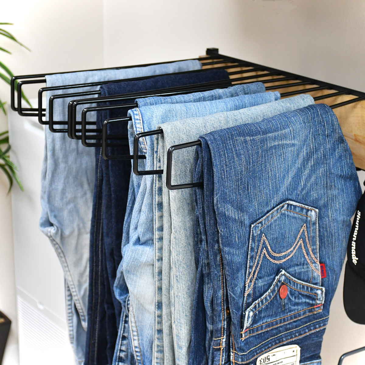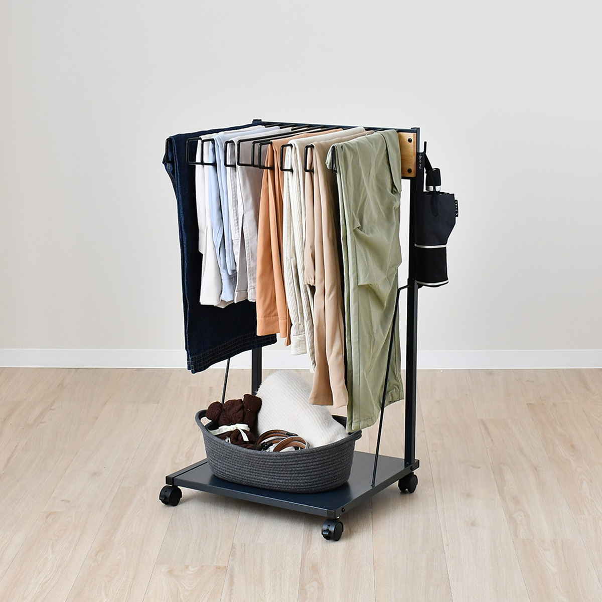 ジーンズはもちろん、スラックス・ワイドパンツ・スカート・タオル掛けとしても活躍します。1台で多用途に使える、頼れる収納インテリアです。