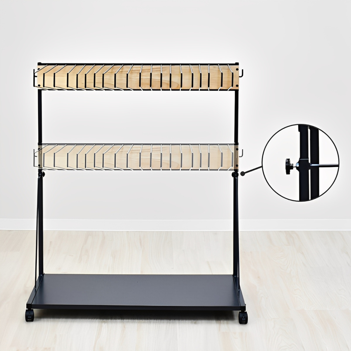 背面のつまみで簡単に高さ調節が可能です。設置場所や収納量に合わせて柔軟に対応でき、下段棚の使い方も広がります。