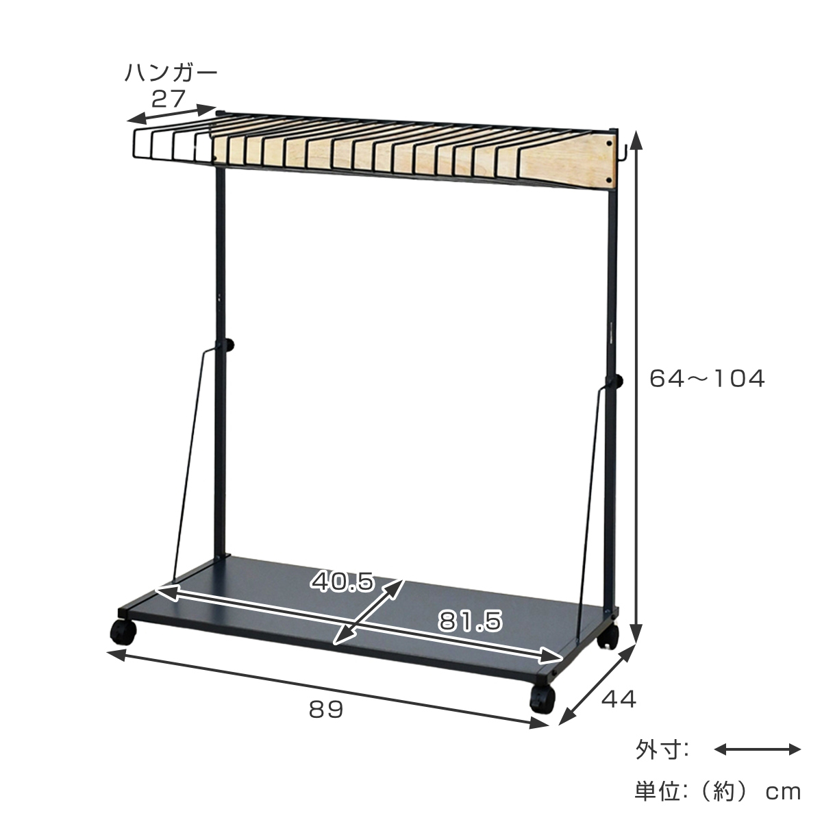 | サイズ | 約 幅89×奥行44×高さ64~104(cm) ハンガー部:長さ約37cm 下段棚板:約幅81.5 奥行40.5cm |
