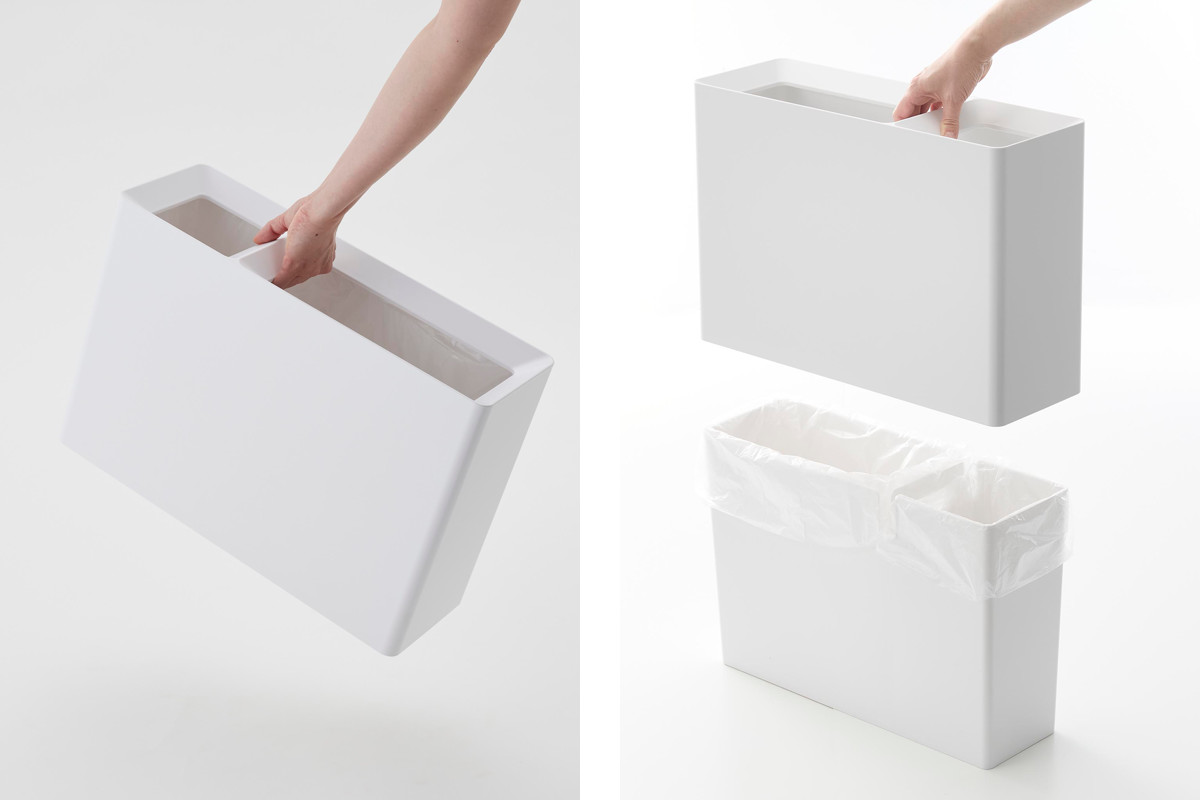 ゴミ袋を見せない設計で、インテリアに馴染む分別ダストボックスです。シンプルなデザインでリビングから寝室、客室まで置く場所を選ばずに使用できます。