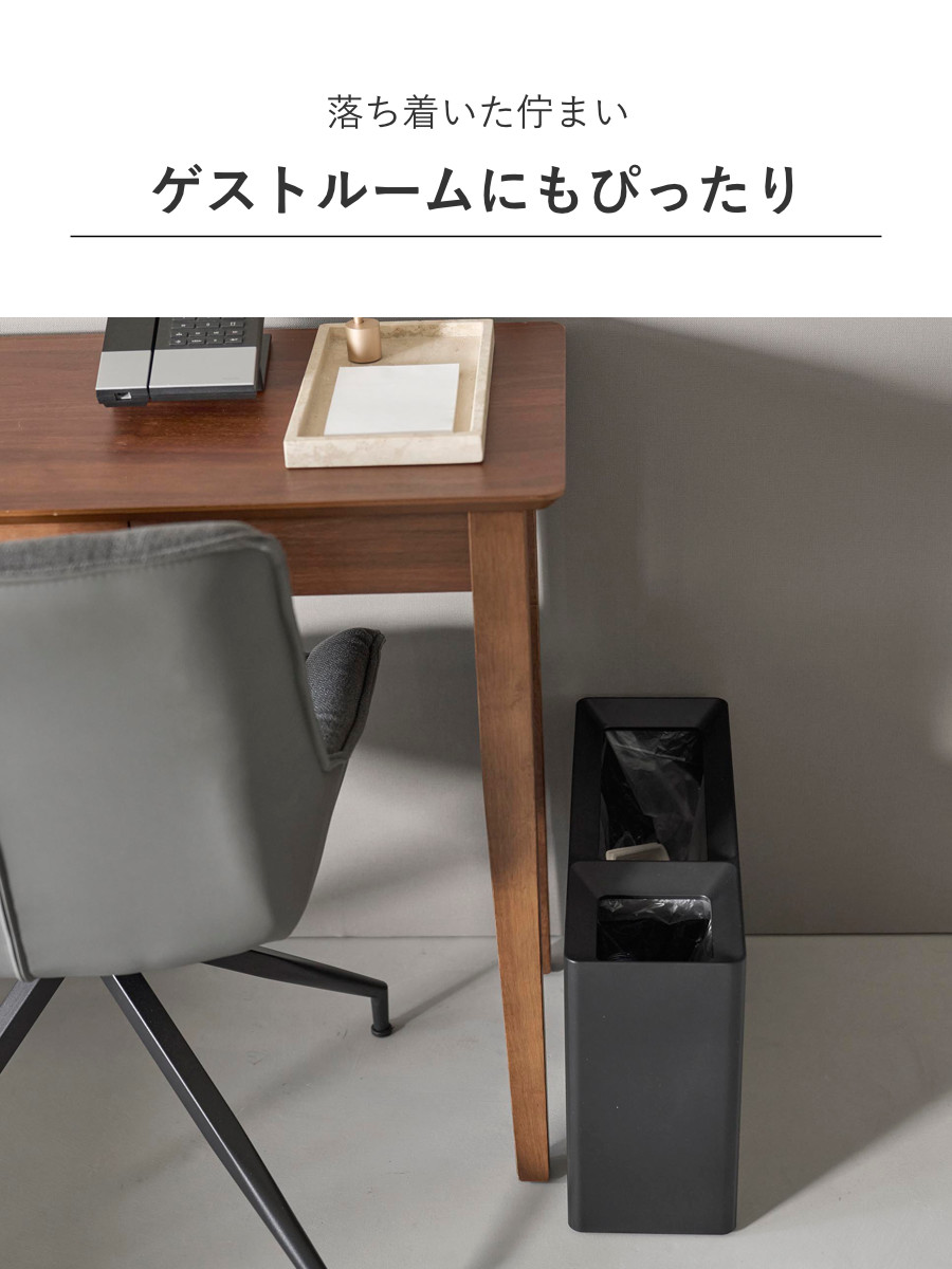 ゴミ袋が外から見えない構造のゴミ箱は、客室をすっきりとした印象に。ホテルライクな空間を演出し、ゲストルームにも使いやすい、ちょうど良いサイズとデザインです。
