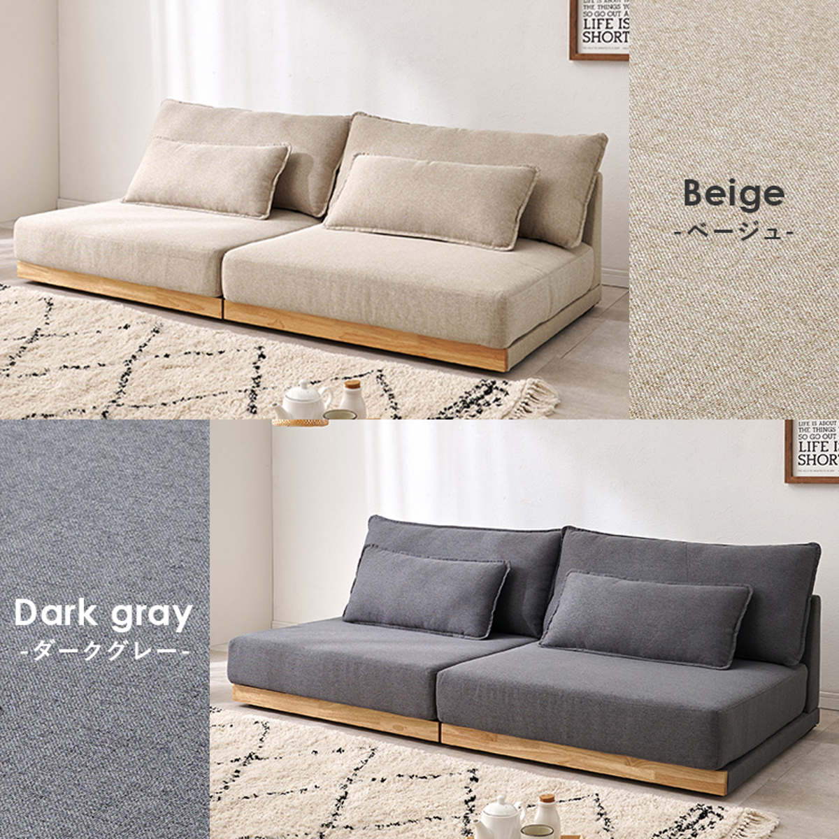 ![]() ローソファ 幅180cm 3人掛け 【▲このページの商品】 | ![]() ローソファ 脚付き 幅180cm 3人掛け |