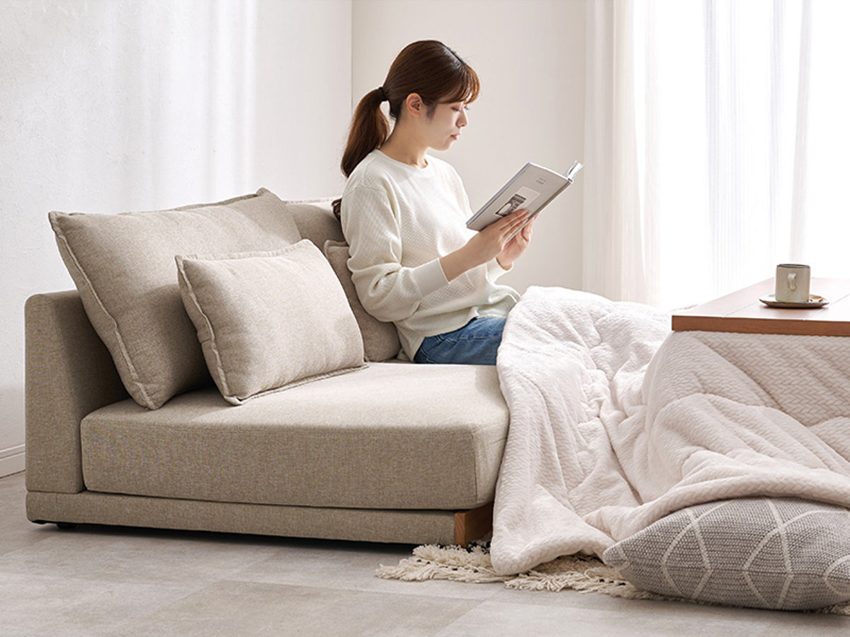 寒い冬には、こたつと合わせての使用も可能。しっかりとこたつ布団を掛けられるので、快適に過ごせます。