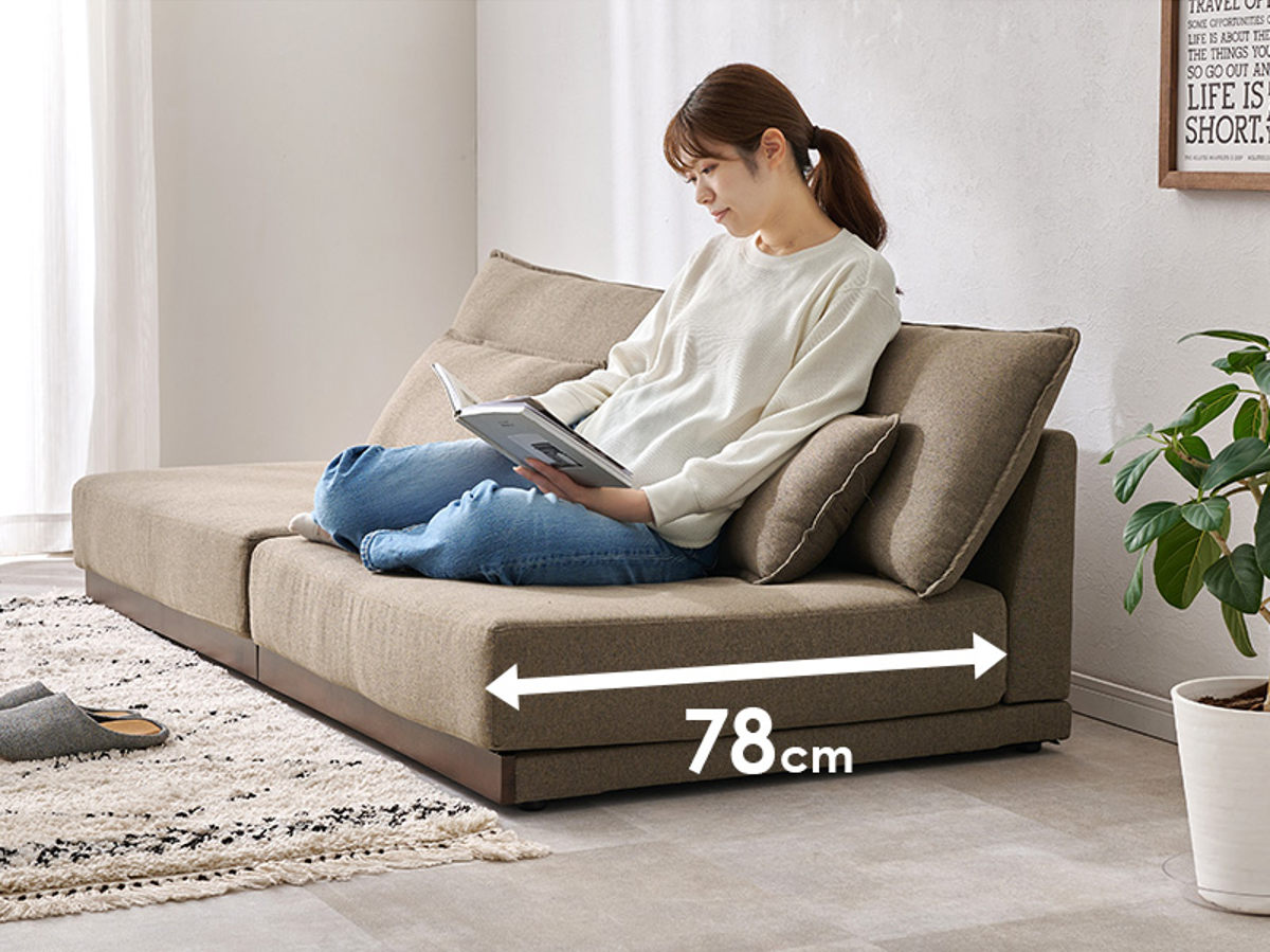 脚をソファにあげてくつろげる、約78cmの広い奥行。いろんな座り方ができるので、リラックスタイムにぴったりです。