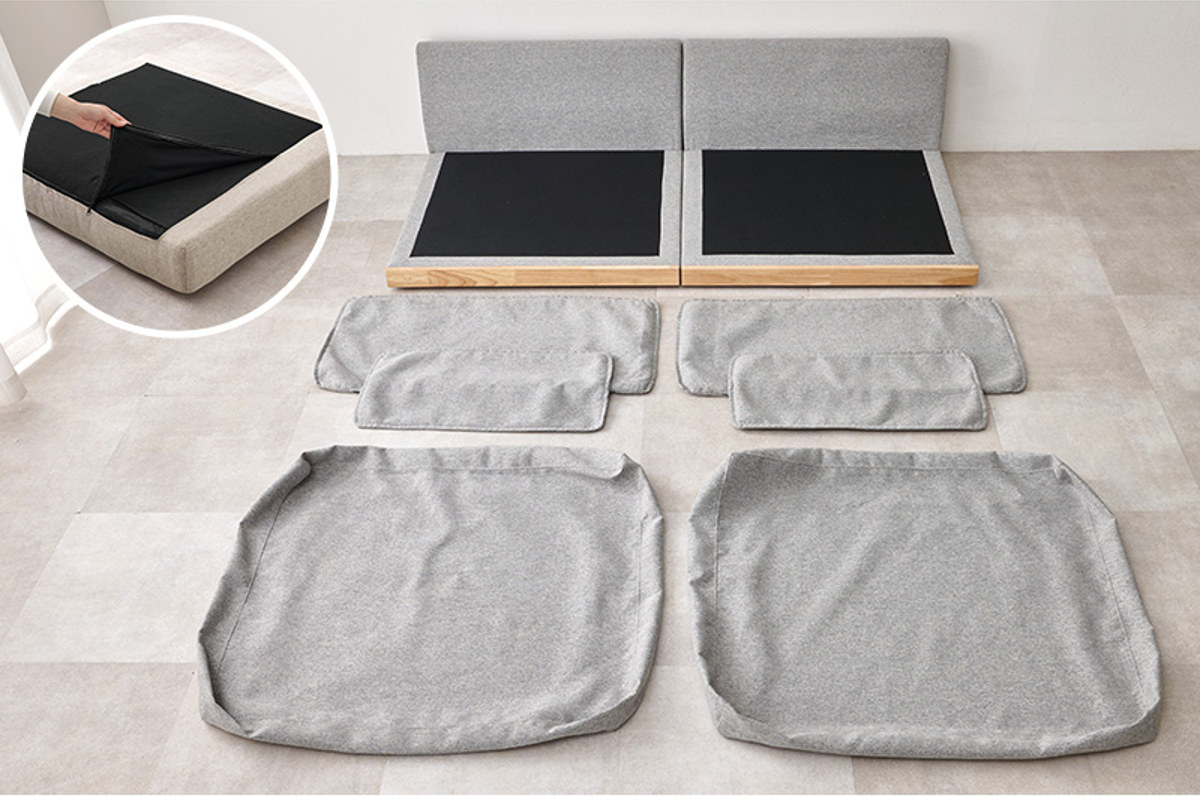 背もたれ、座面部分のクッションカバーは取り外して洗濯可能。お子様やペットのいるご家庭でも安心してご利用いただけます。