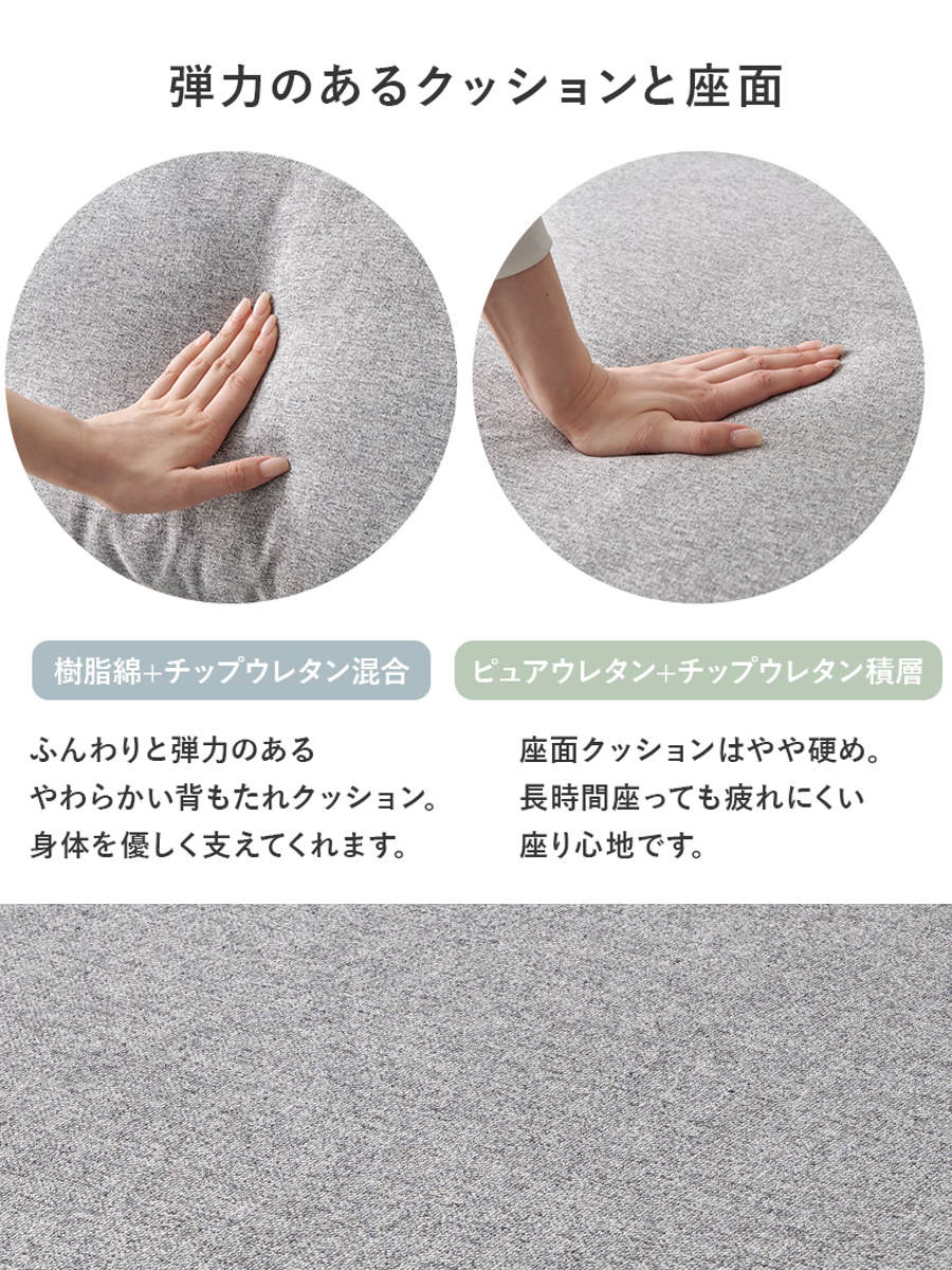 | 材質 | 構造部材:天然木、ポリエステル、塩化ビニール樹脂、ウレタンフォーム |