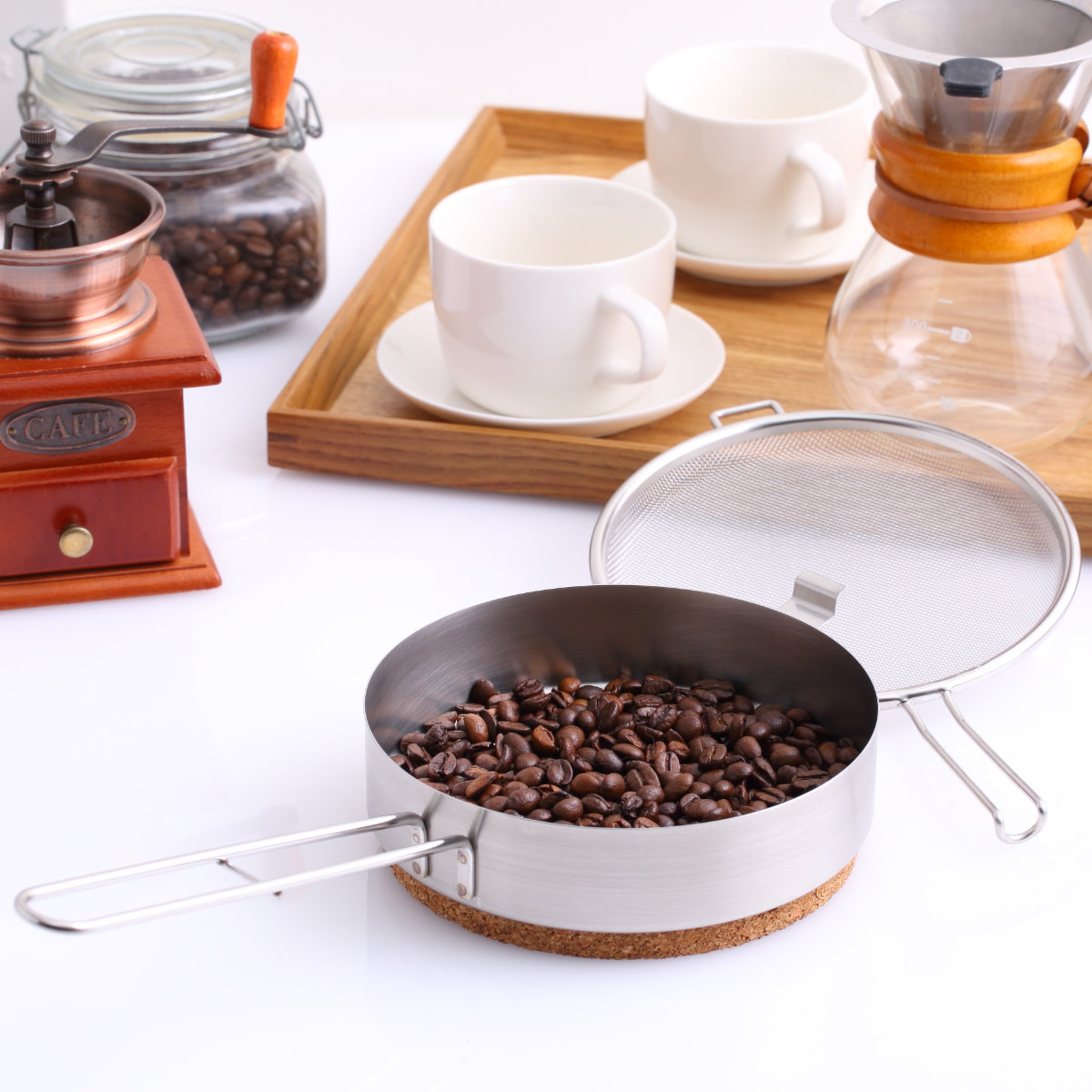 アミ付きなのでパチパチと食材が飛び散りにくく、均一に煎ることができるので、手軽に自家焙煎や煎り調理が楽しめます。