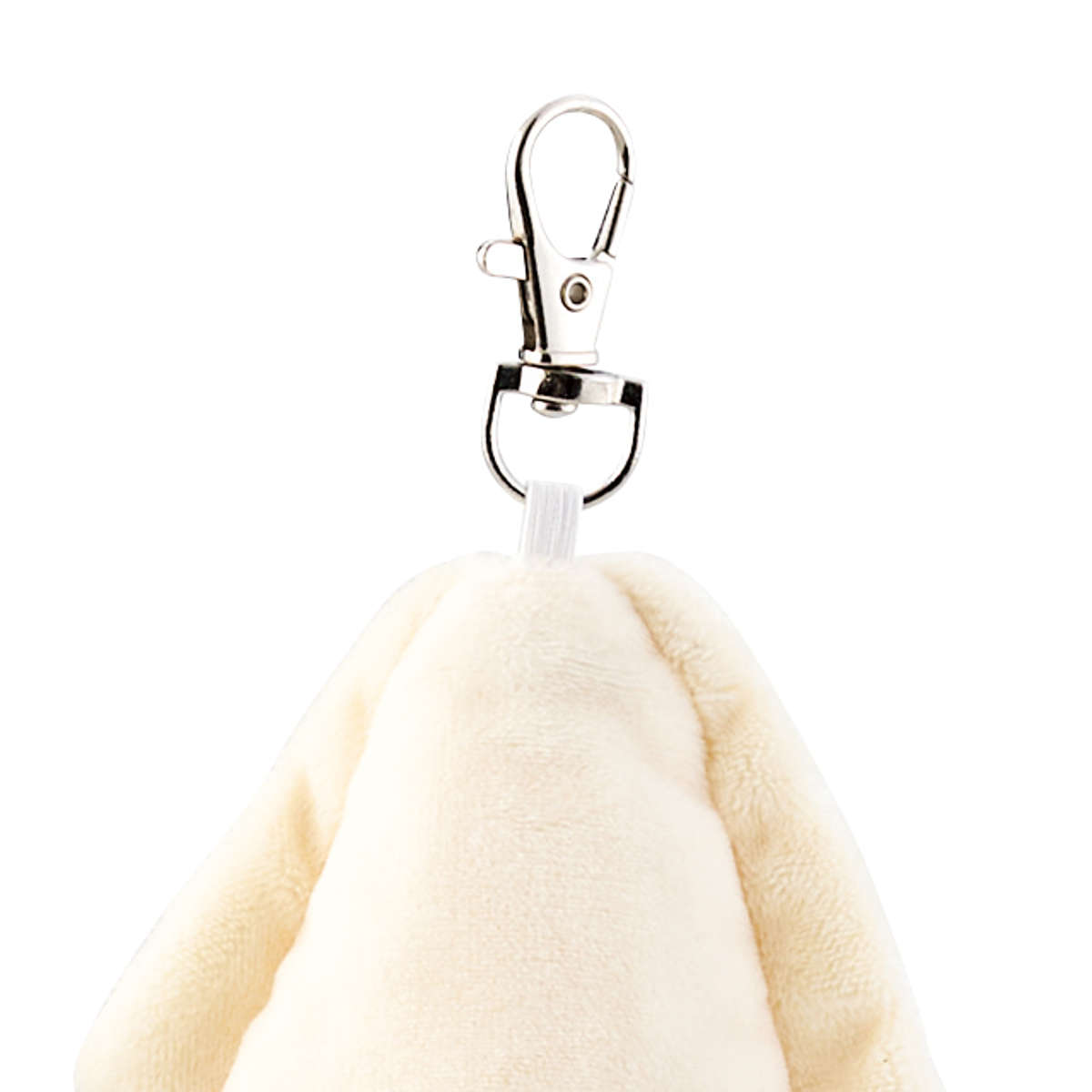 フックでバッグに固定できるので、使っている時もじゃまにならず、見た目の可愛さもそのまま楽しめます。