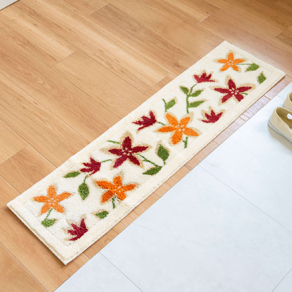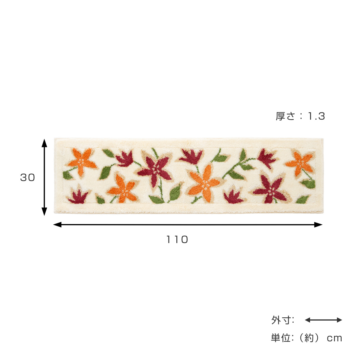 華やかな花柄デザインで足元がパッと彩る 室内用 30×110cm