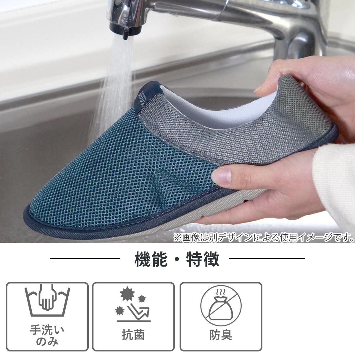 汚れてしまった場合も、手洗いが可能なので清潔に保てます。抗菌・防臭加工もされており、いつでも快適にお履きいただけます。
